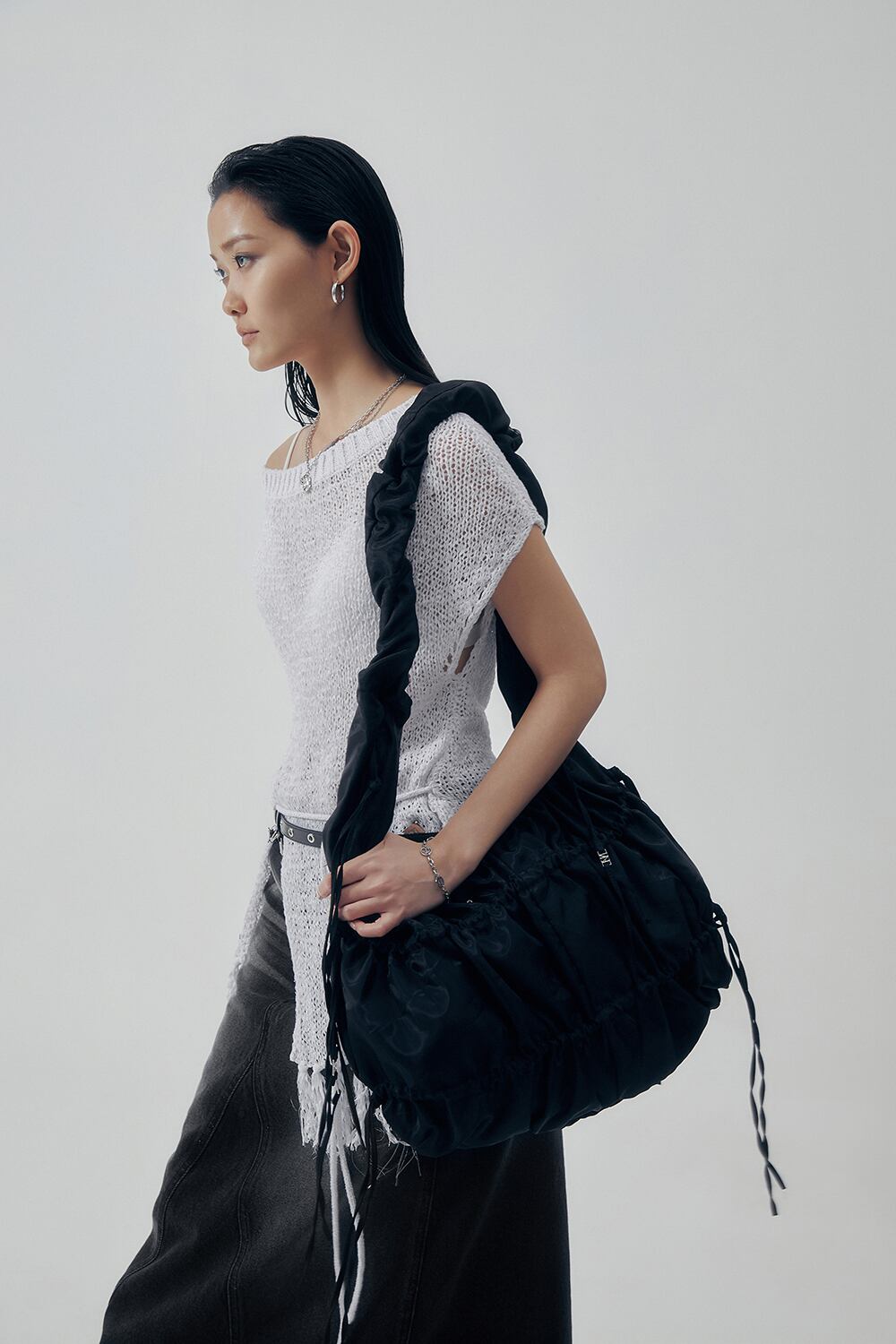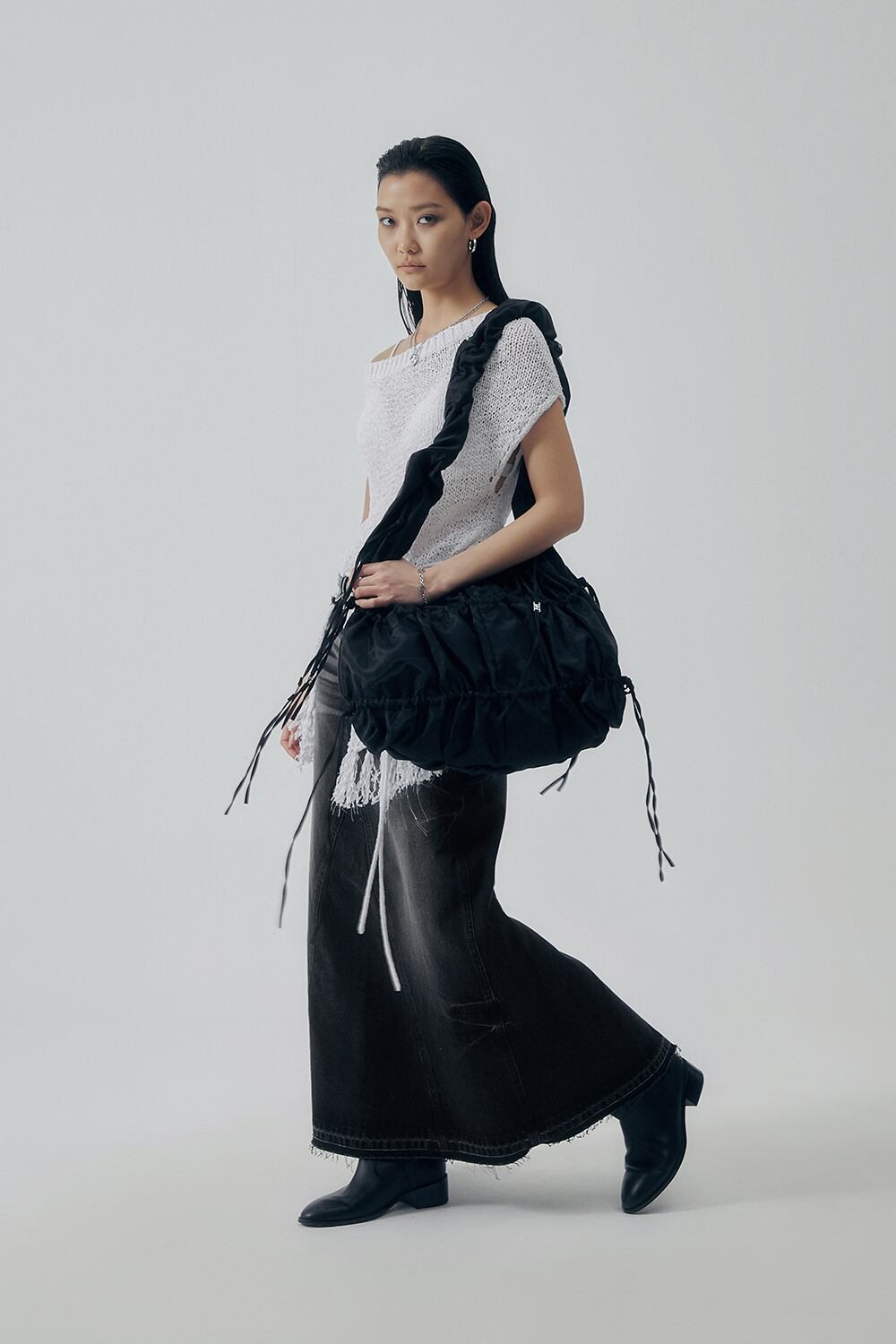 [TREEMINGBIRD] Puffy Ribbon Hobo Bag [ Black ]