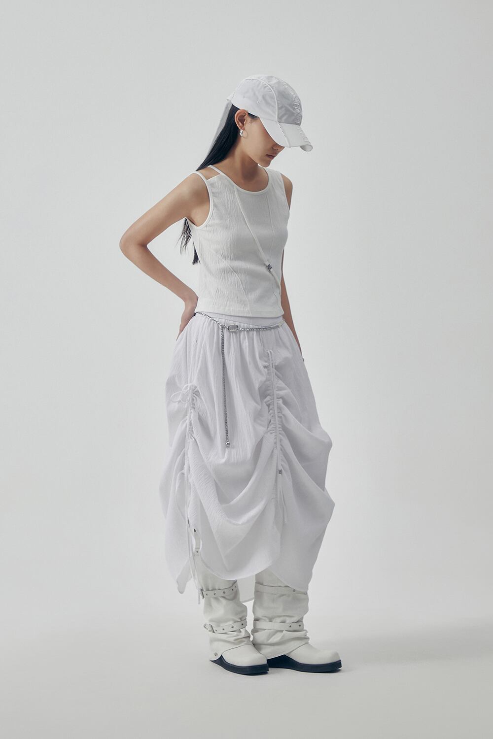 [TREEMINGBIRD] Soft Shirring Skirt [ White ]