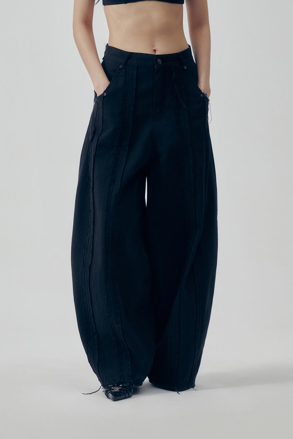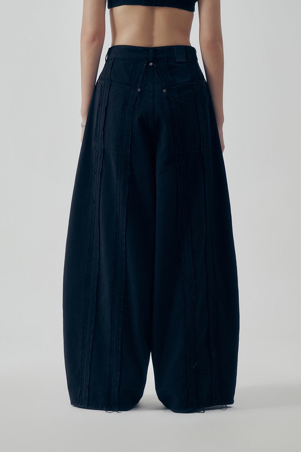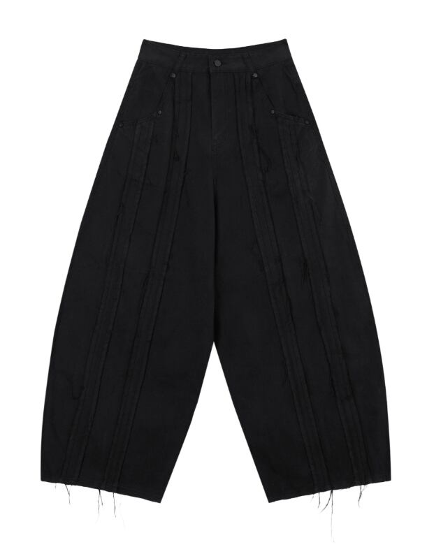 [TREEMINGBIRD] Raw Cut Balloon Denim Pants [ Black ]