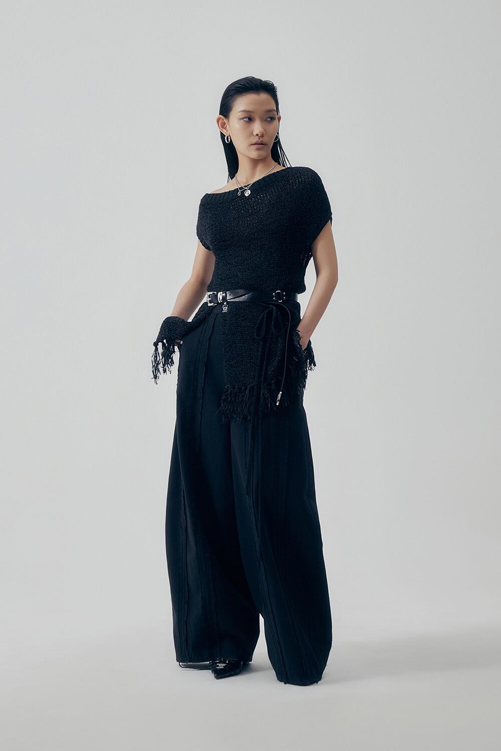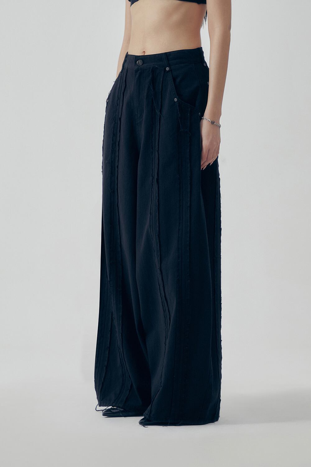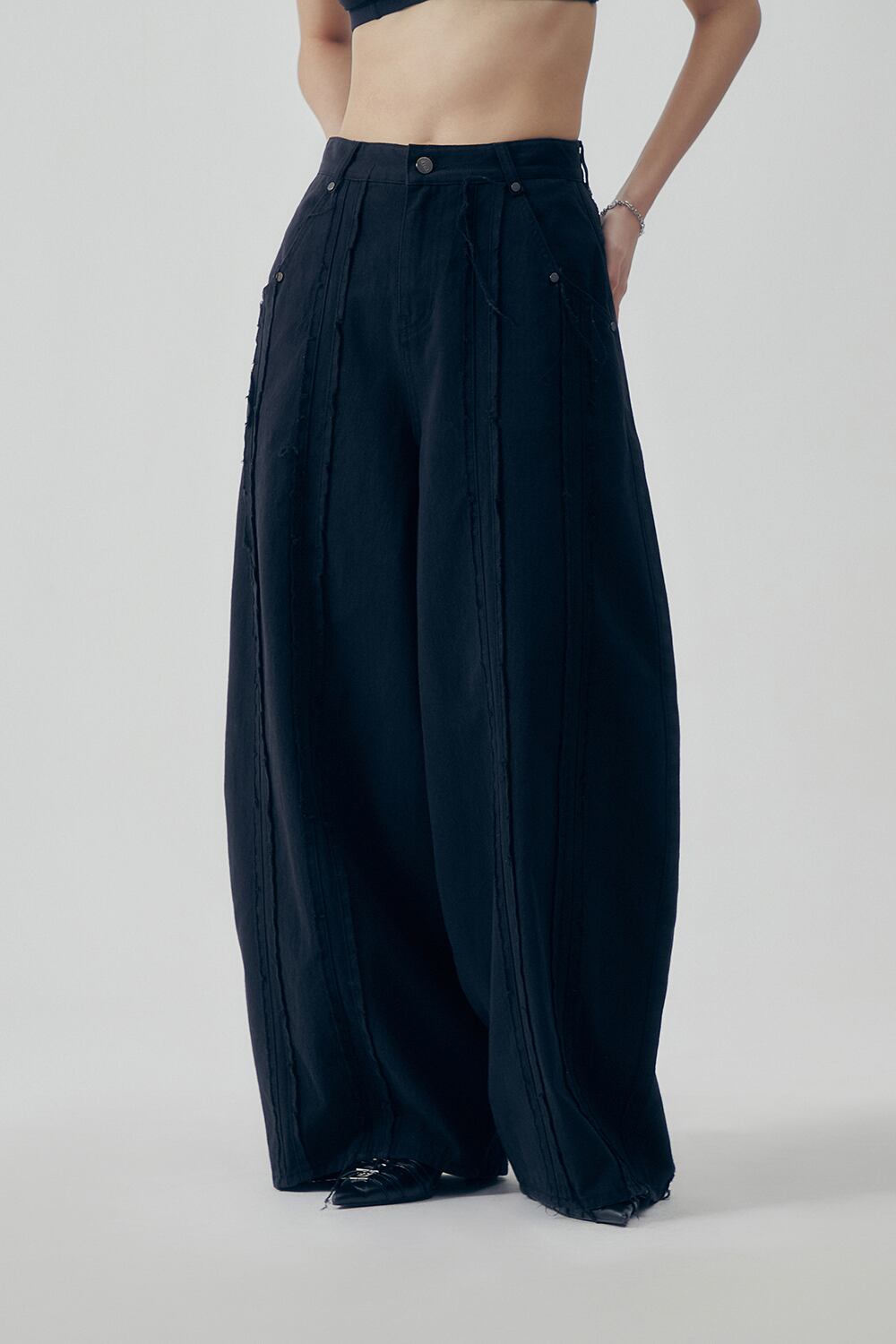 [TREEMINGBIRD] Raw Cut Balloon Denim Pants [ Black ]