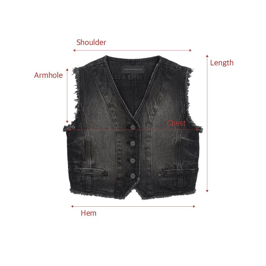 [TREEMINGBIRD] Vintage Frayed Denim Set-up Vest [ Black ]