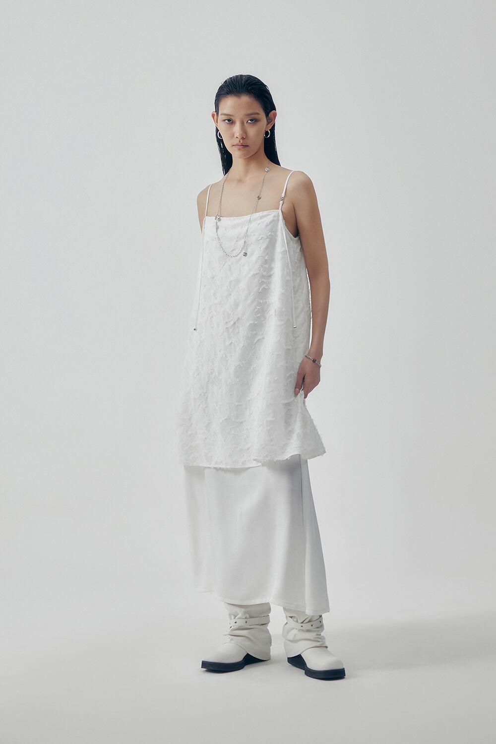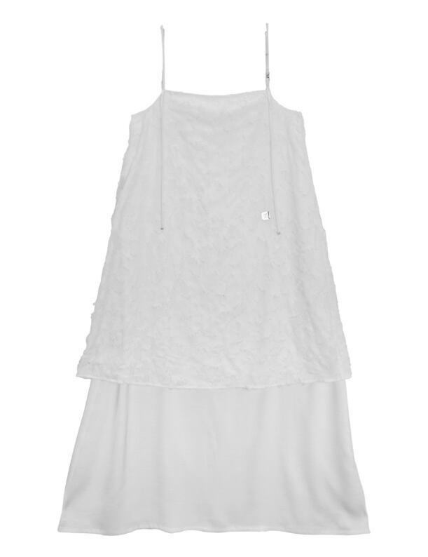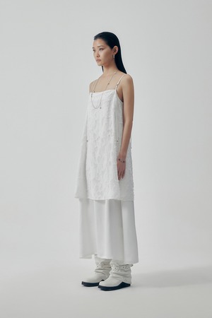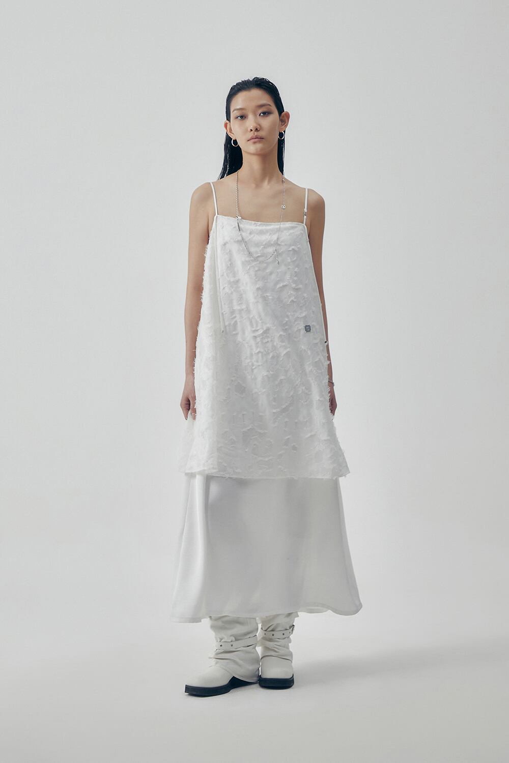 [TREEMINGBIRD] Tiered Sleeveless Long One-Piece [ White ]