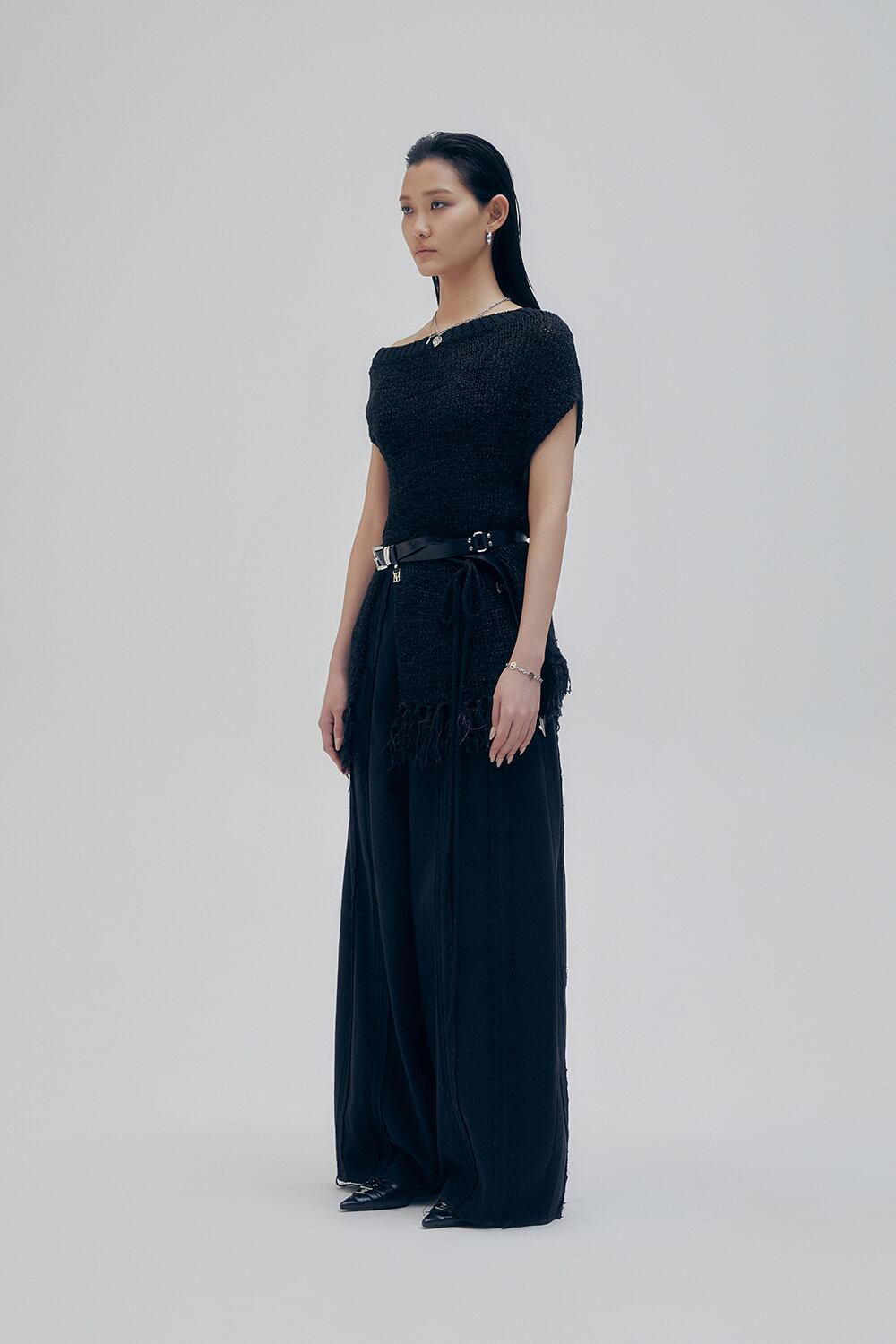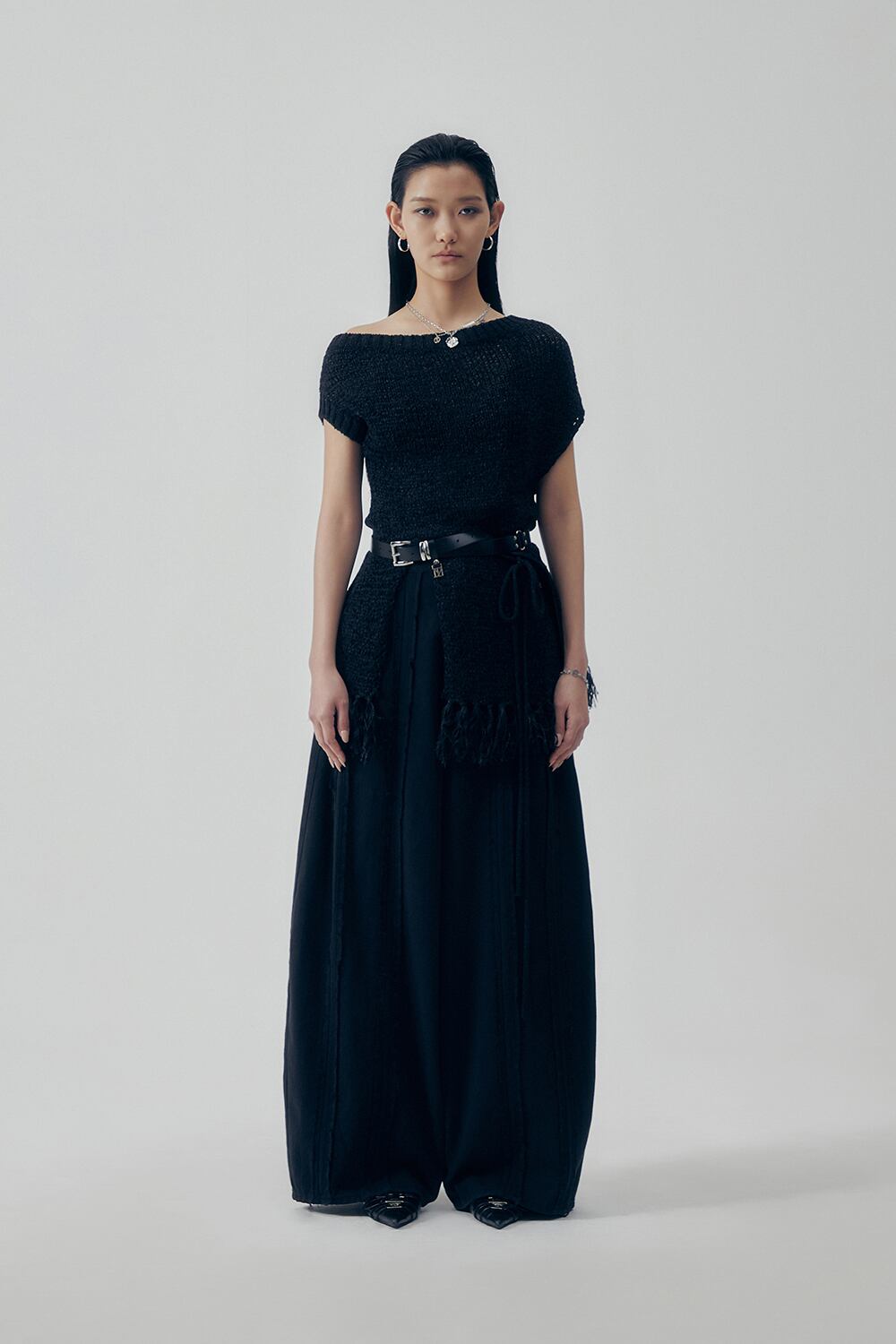 [TREEMINGBIRD] Slit Tassel Knit [ Black ]