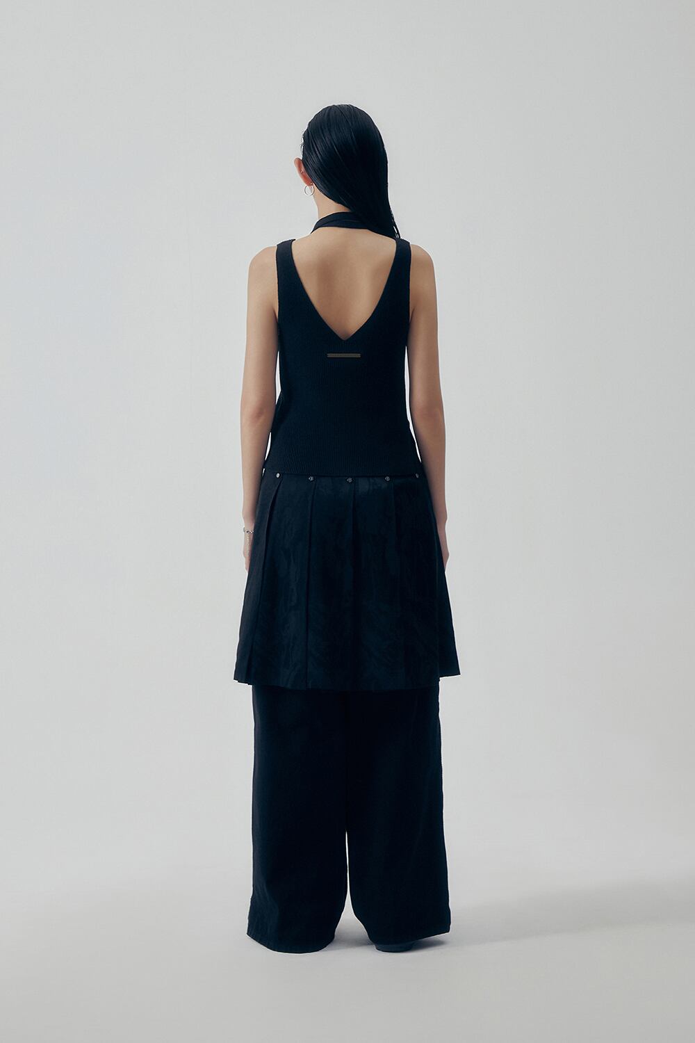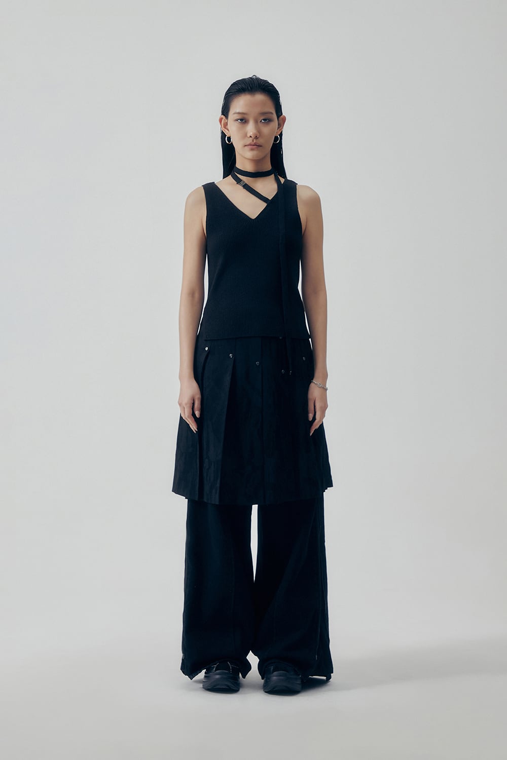 [TREEMINGBIRD] Scarf-Tie Knit Sleeveless [ Black ]