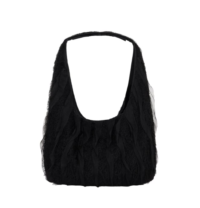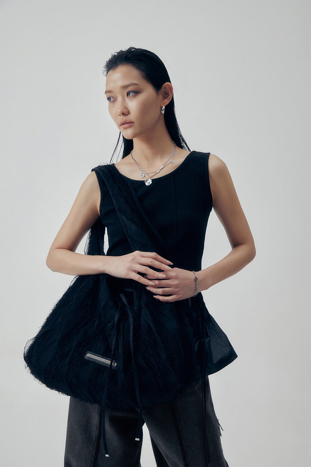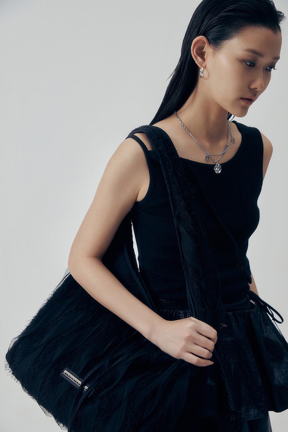 [TREEMINGBIRD] Fray Lace Double Layered Bag [ Black ]