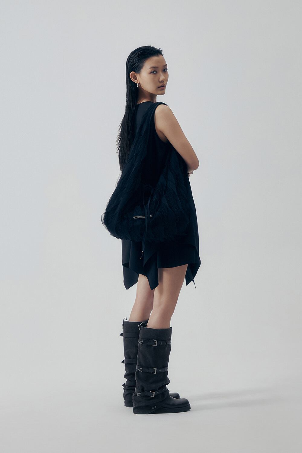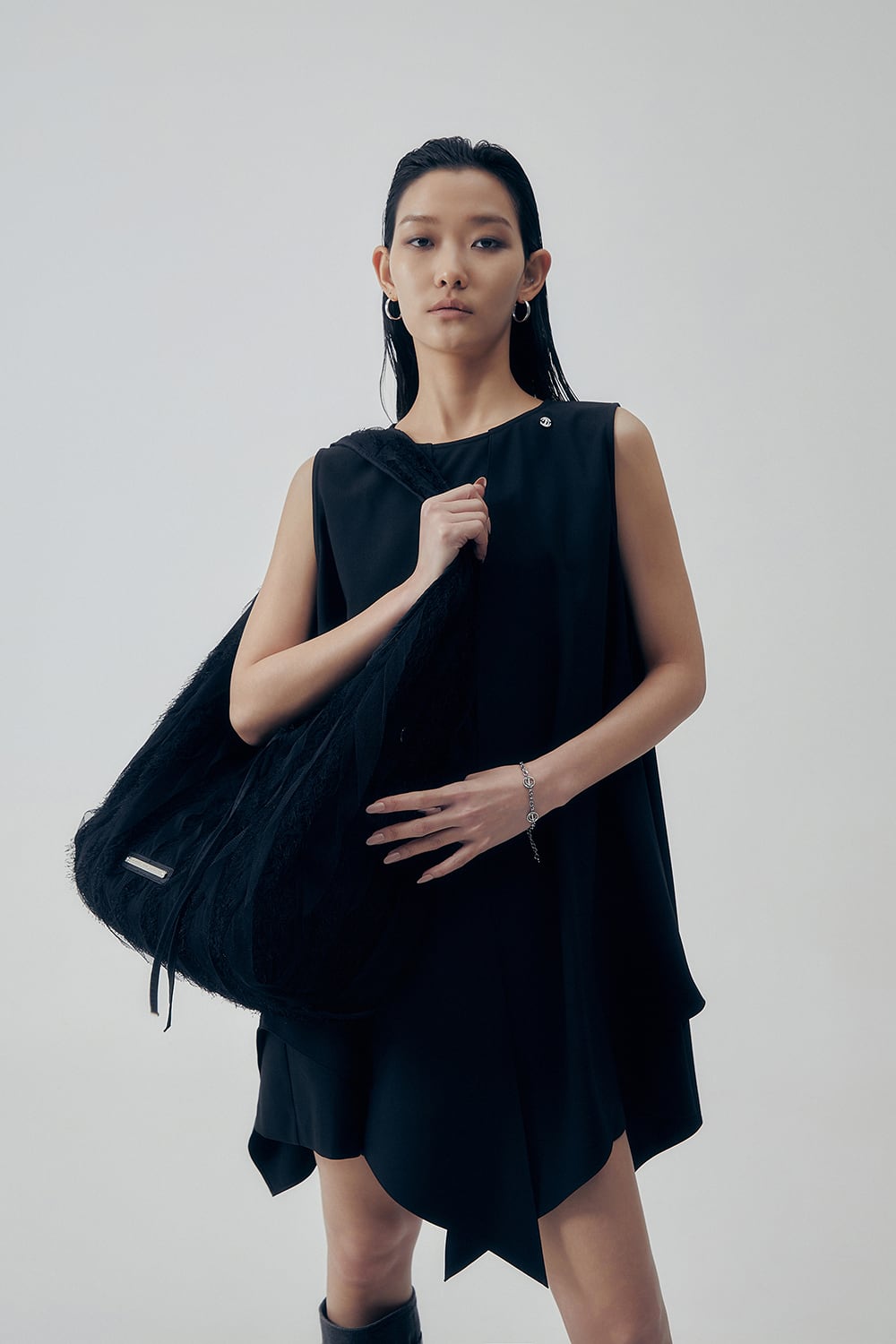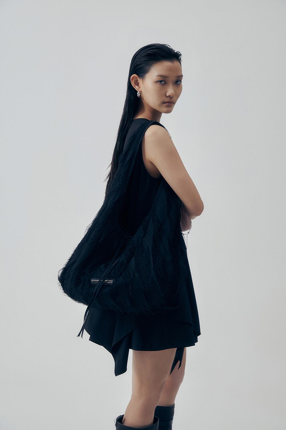 [TREEMINGBIRD] Fray Lace Double Layered Bag [ Black ]