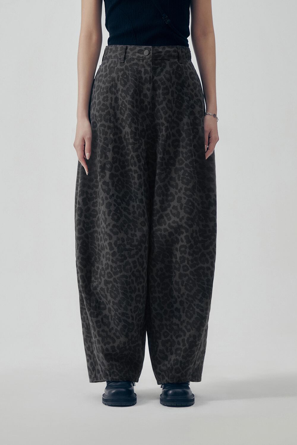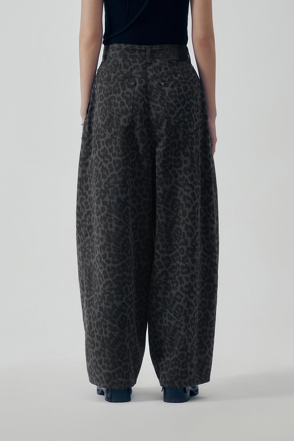[TREEMINGBIRD] Leopard Curved Balloon Fit Denim Pants [ Multi ]