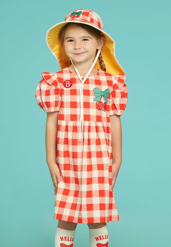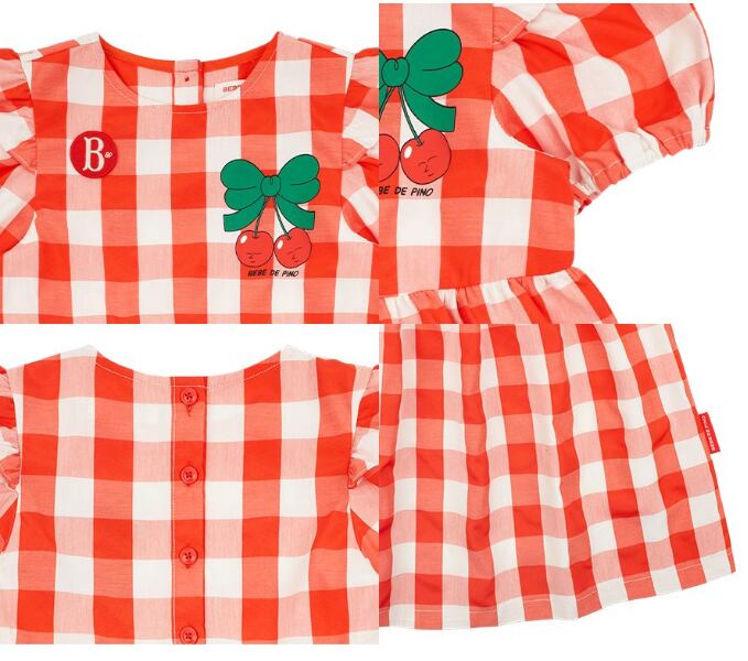 [BEBE DE PINO] Cherry gingham check frill dress 正規品 韓国ブランド 韓国ファッション 韓国代行 韓国通販 ベベドピノ bebedepino 日本 店舗 韓国 子供服