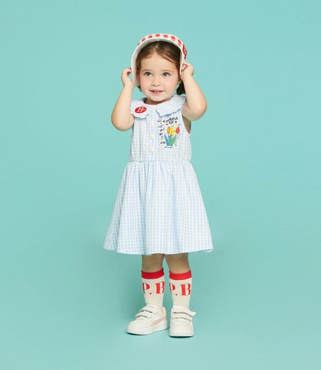 [BEBE DE PINO] Tulips baby gingham check collar dress