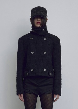 [BOHEMIAN SEOUL] BELTED HALF COAT, TWEED BLACK