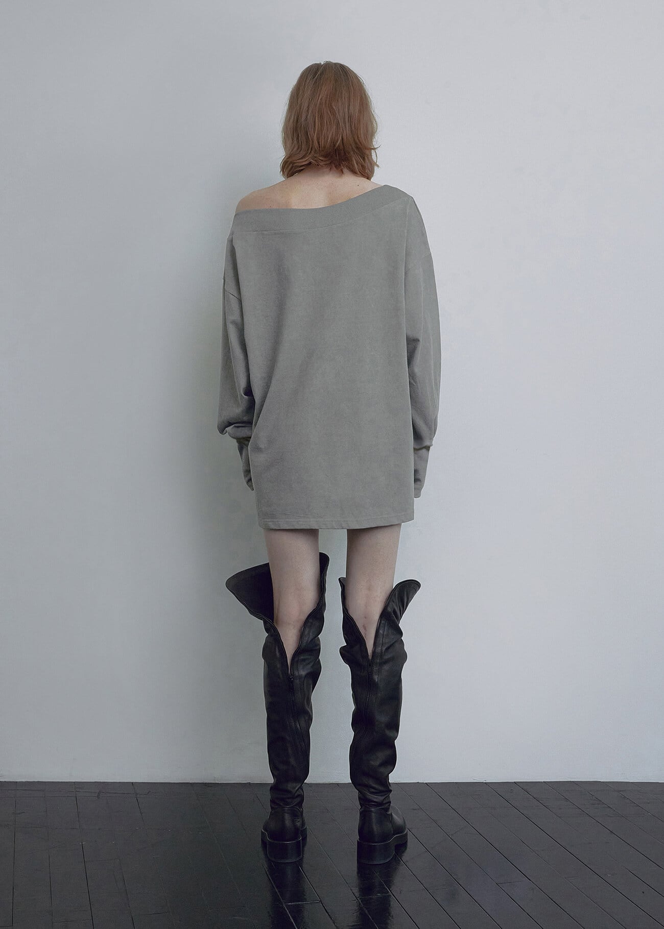 [BOHEMIAN SEOUL] UNBALANCED SHOULDER T, CHARCOAL