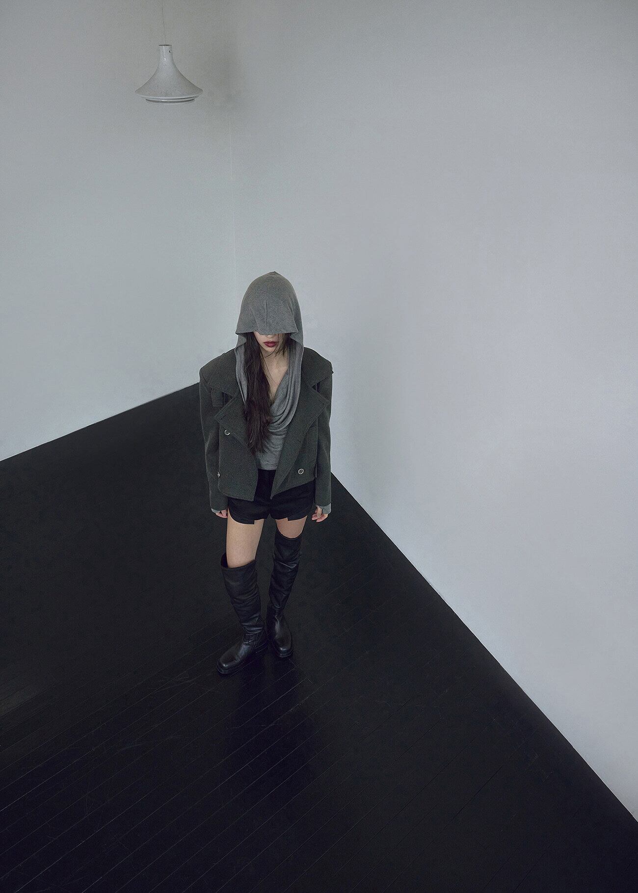 [BOHEMIAN SEOUL] BELTED HALF COAT, CHARCOAL