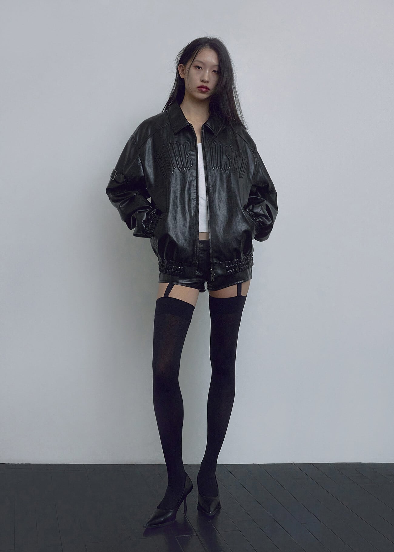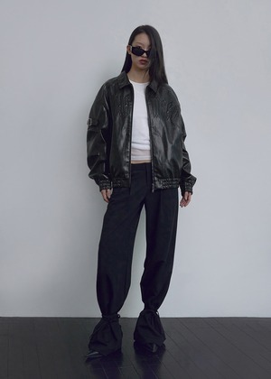 [BOHEMIAN SEOUL] EMBO LOGO LEATHER JUMPER, BLACK 正規品 韓国ブランド 韓国通販 韓国代行 韓国ファッション bohemseo ボヘミアンソウル 日本 店舗