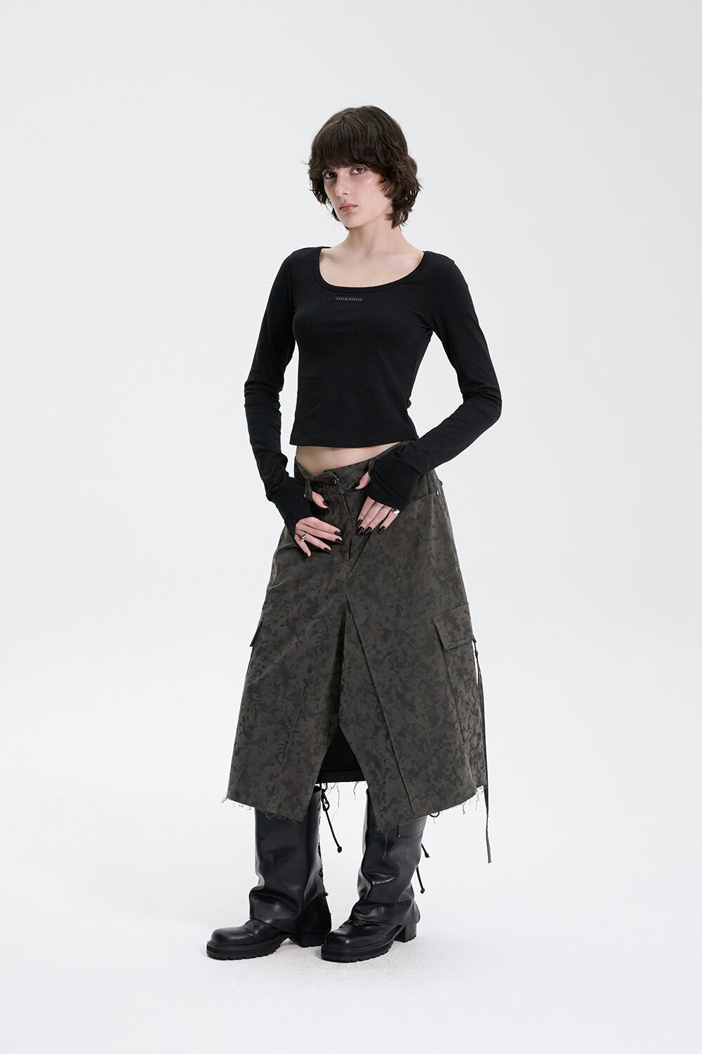 [TREEMINGBIRD] Camo Bermuda Cargo Skirt [ Khaki ]