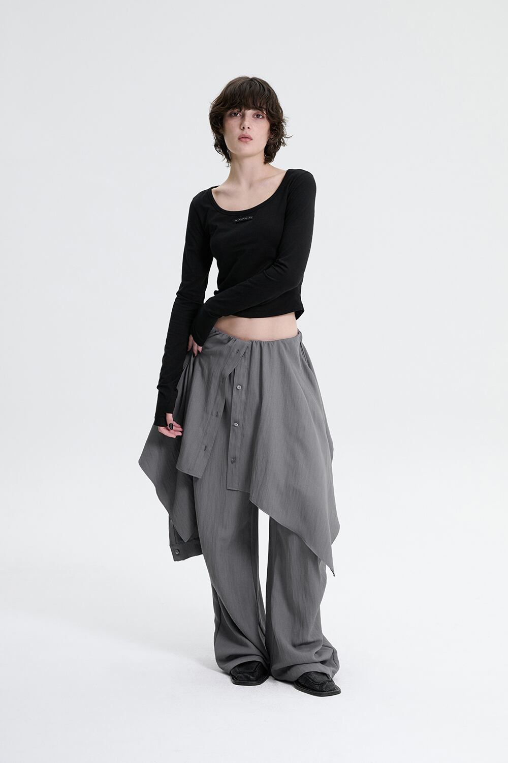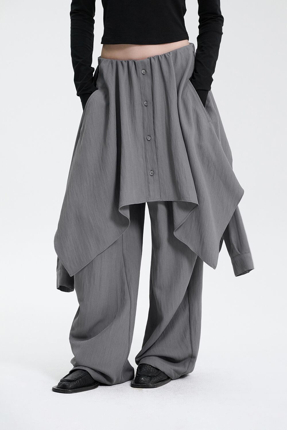 [TREEMINGBIRD] Shirt-Layered Pants [ Gray ]