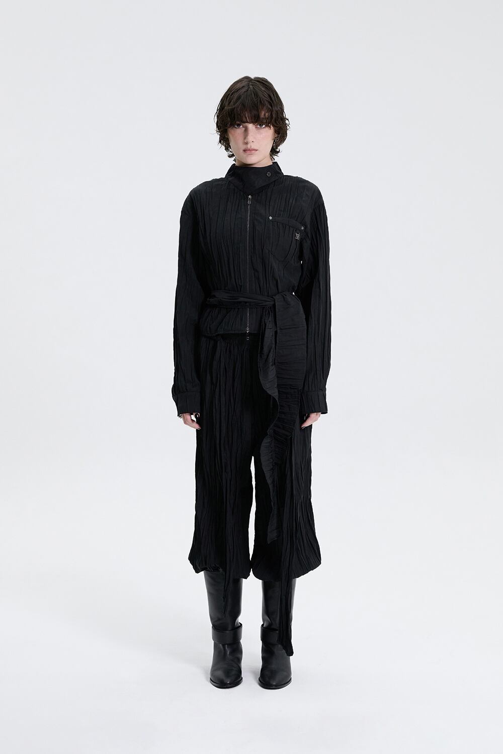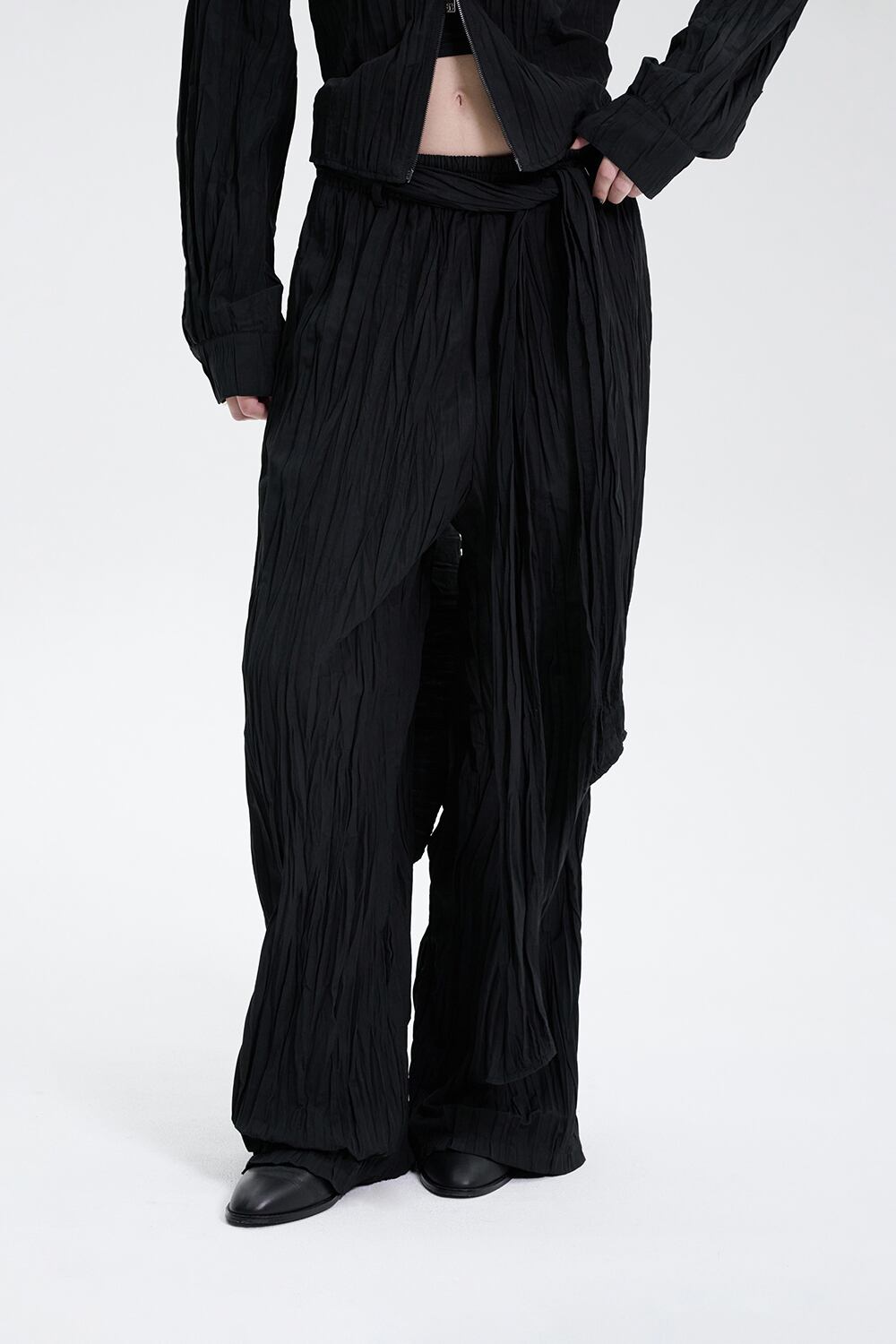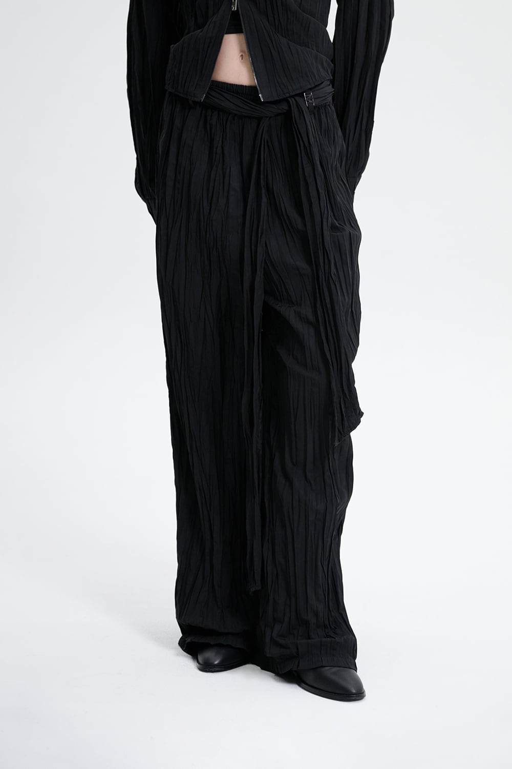 [TREEMINGBIRD] Crinkle Easy Set-up Pants [ Black ]