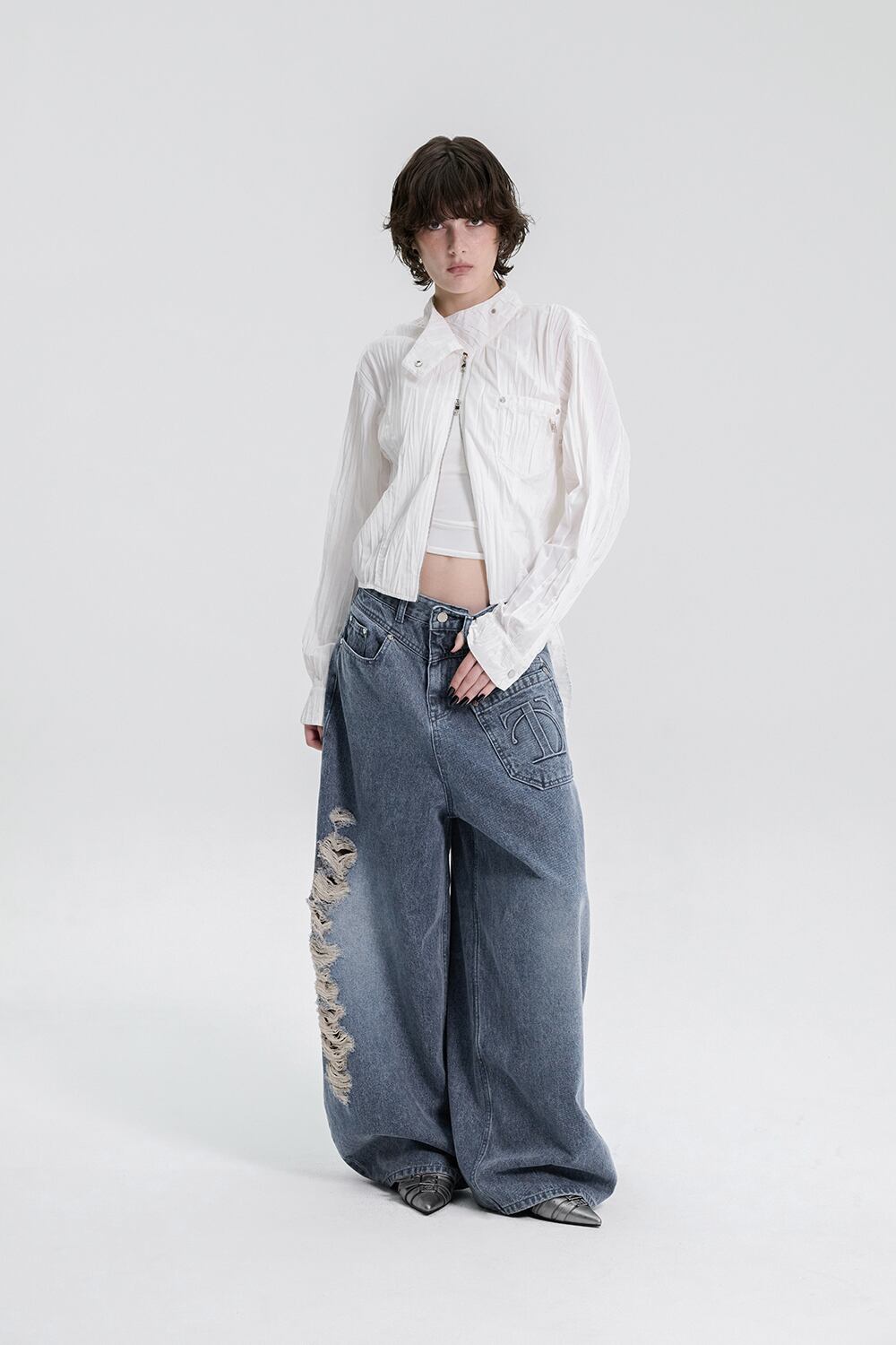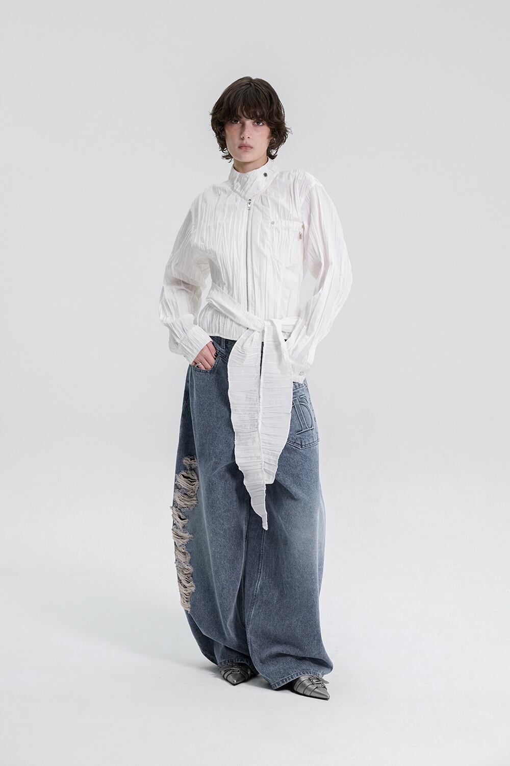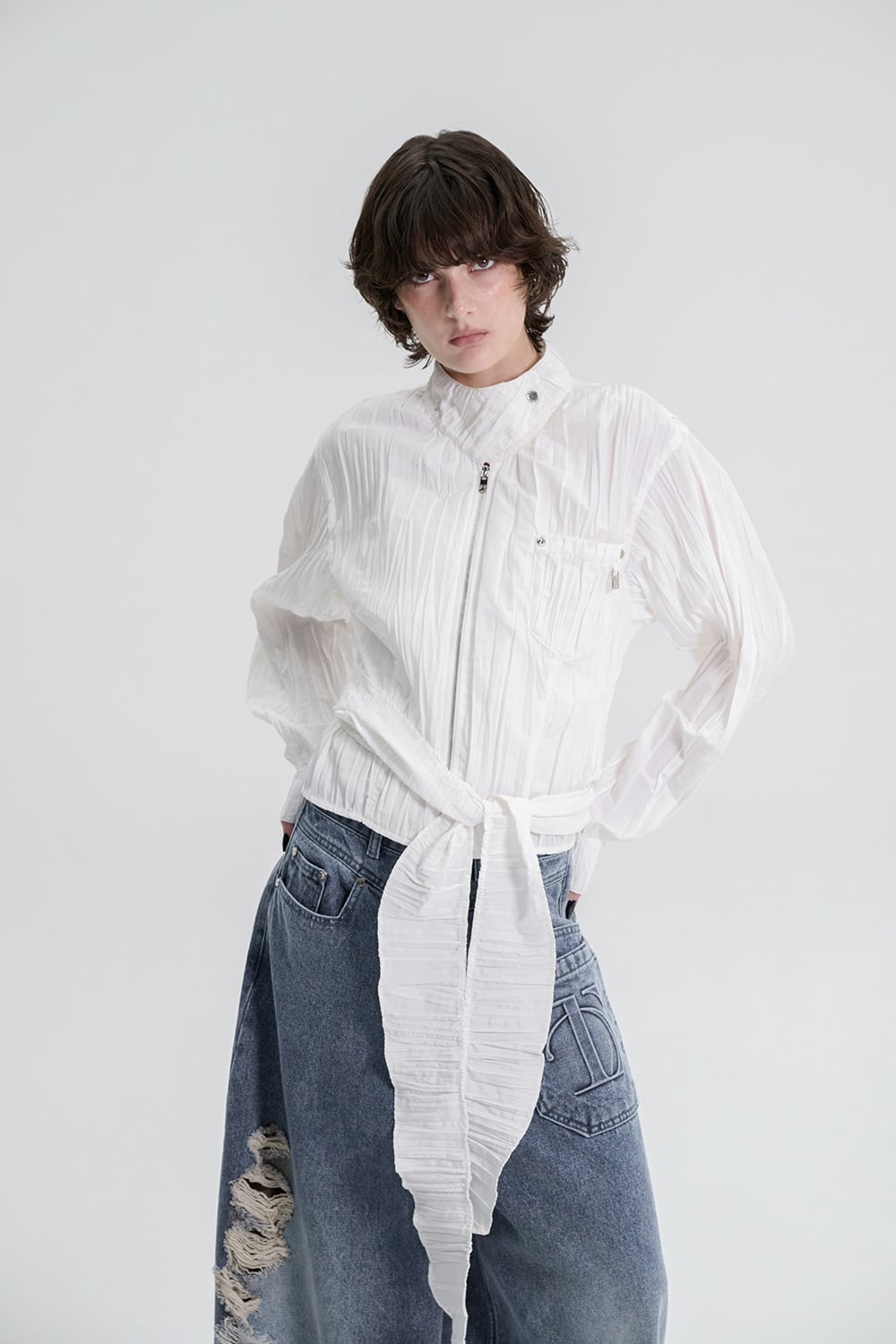 [TREEMINGBIRD] Crinkle Back Tie Set-up Shirt [ White ]