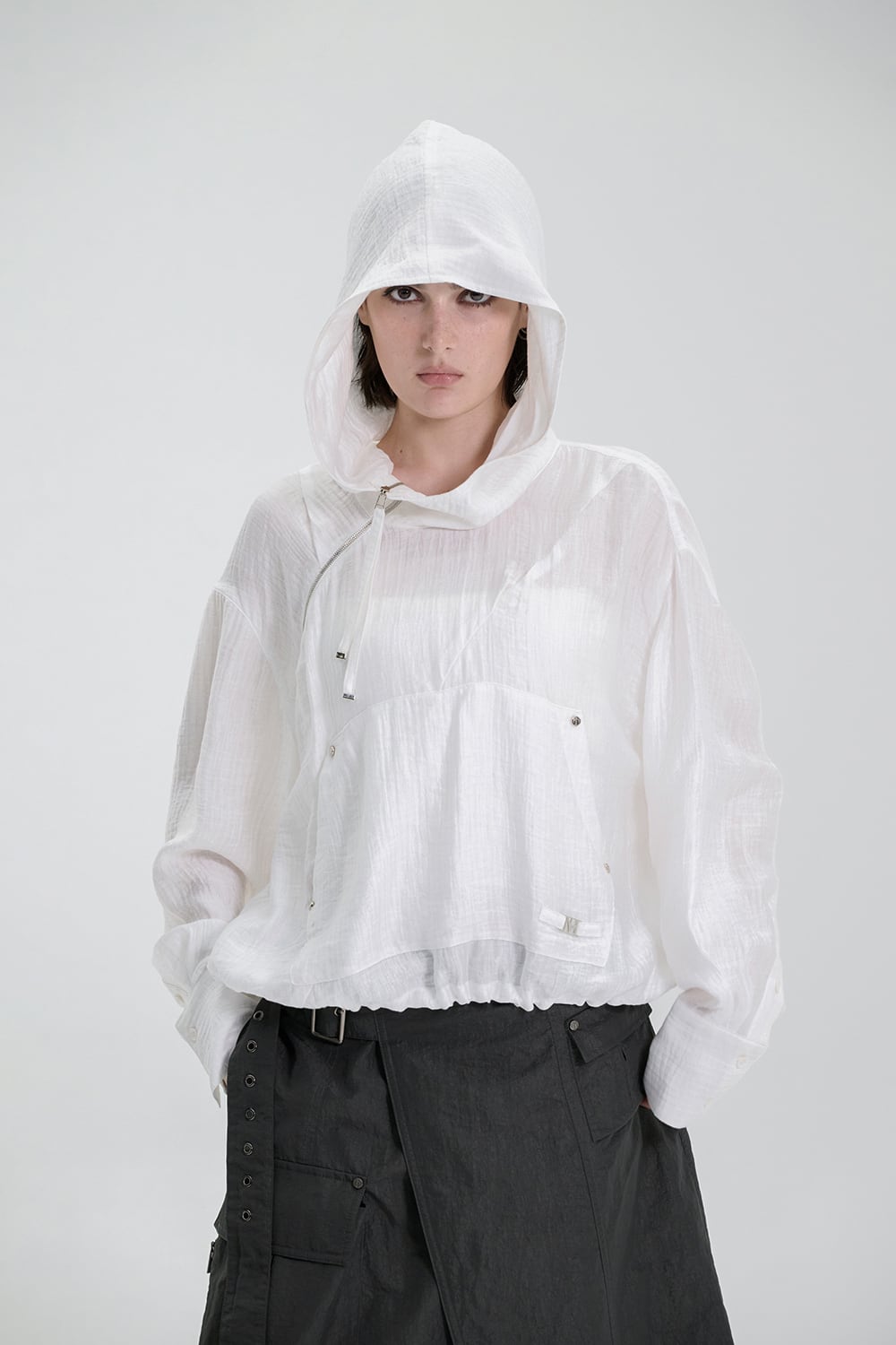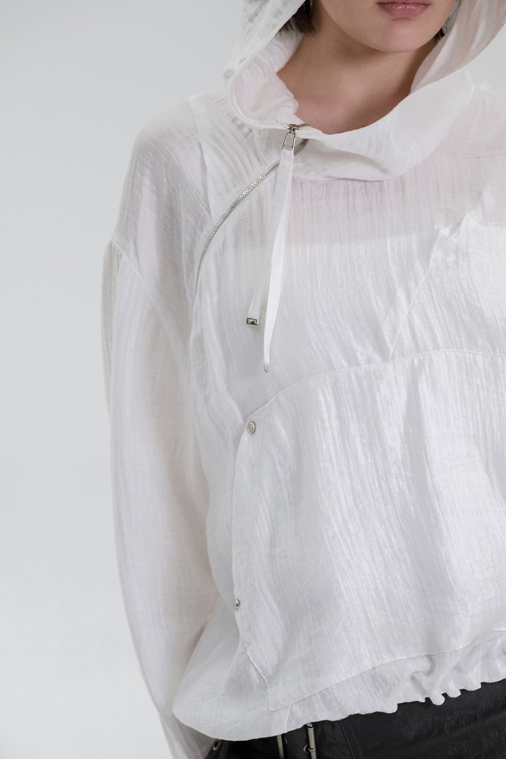 [TREEMINGBIRD] Crinkle Zipper Anorak [ White ]