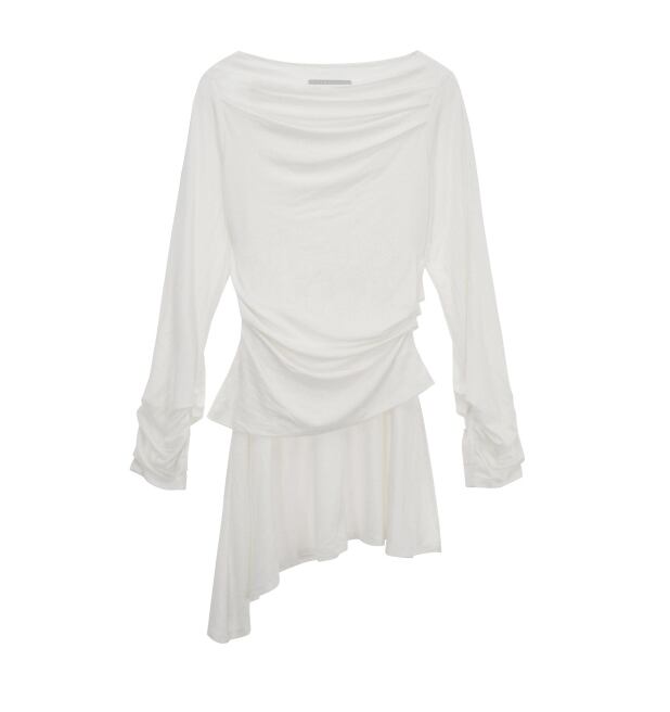 [TREEMINGBIRD] Draped Jersey Long Sleeve [ White ]