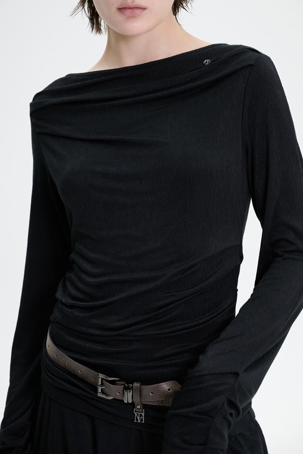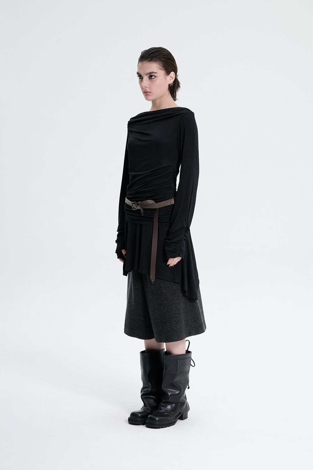 [TREEMINGBIRD] Draped Jersey Long Sleeve [ Black ]