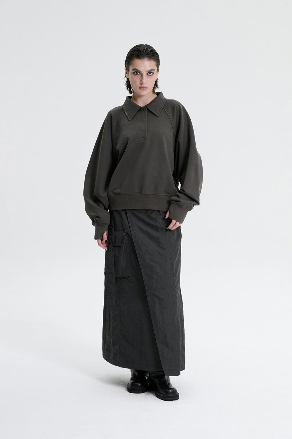 [TREEMINGBIRD] Button-Up Rugby T-shirts [ Charcoal ]