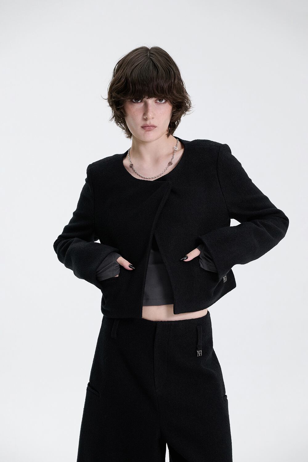 [TREEMINGBIRD] Crop Tweed Set-up Jacket [ Black ]