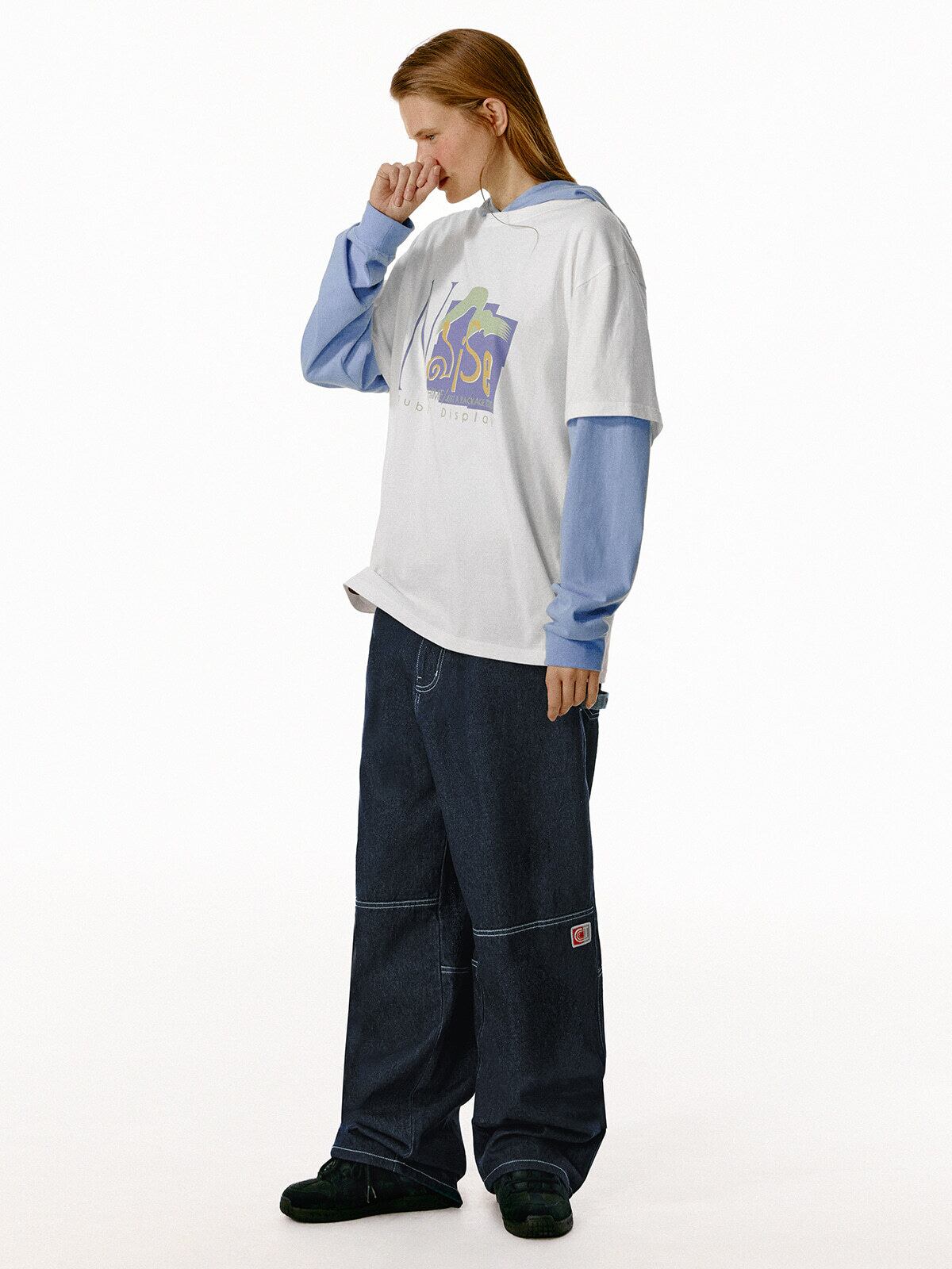 [TEKET] Noise Layered Hooded Tee White 正規品 韓国ブランド 韓国ファッション 韓国代行 日本 店舗 テケット
