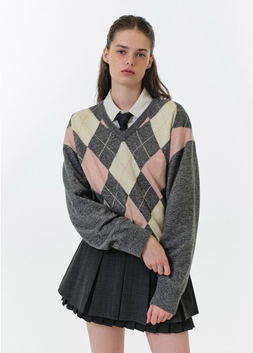 [GROVE] MOMO ARGYLE KNIT 正規品 韓国ブランド 韓国ファッション 韓国代行 日本 店舗 ブランド グローブ grvr 通販