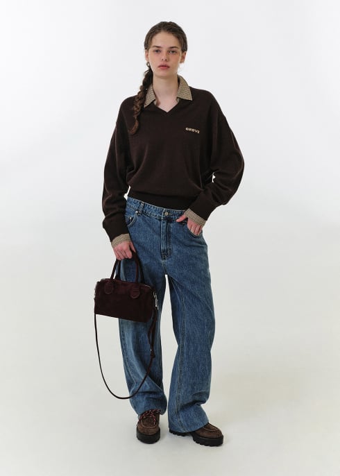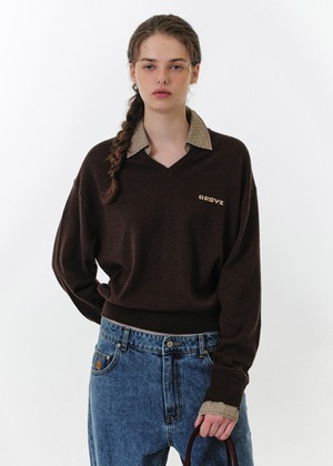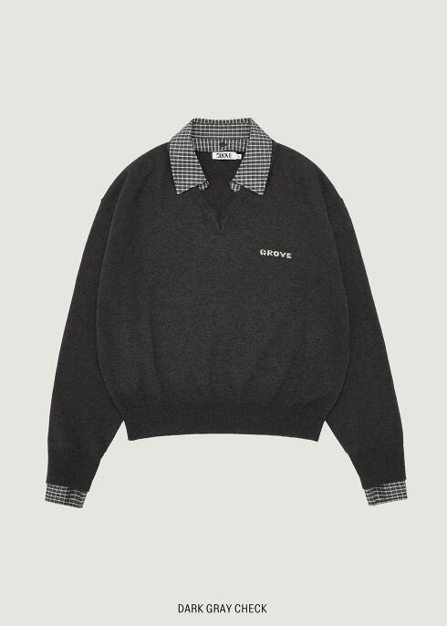 [GROVE] EVIE CHECK COLLAR KNIT 正規品 韓国ブランド 韓国ファッション 韓国代行 日本 店舗 ブランド グローブ grvr 通販