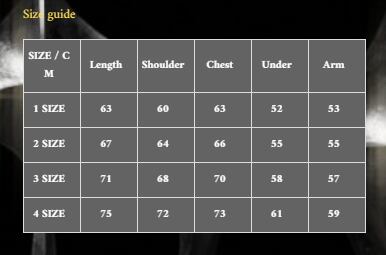 添付のサイズ表をご参照ください。