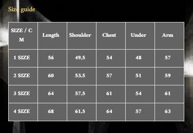 添付のサイズ表をご参照ください。