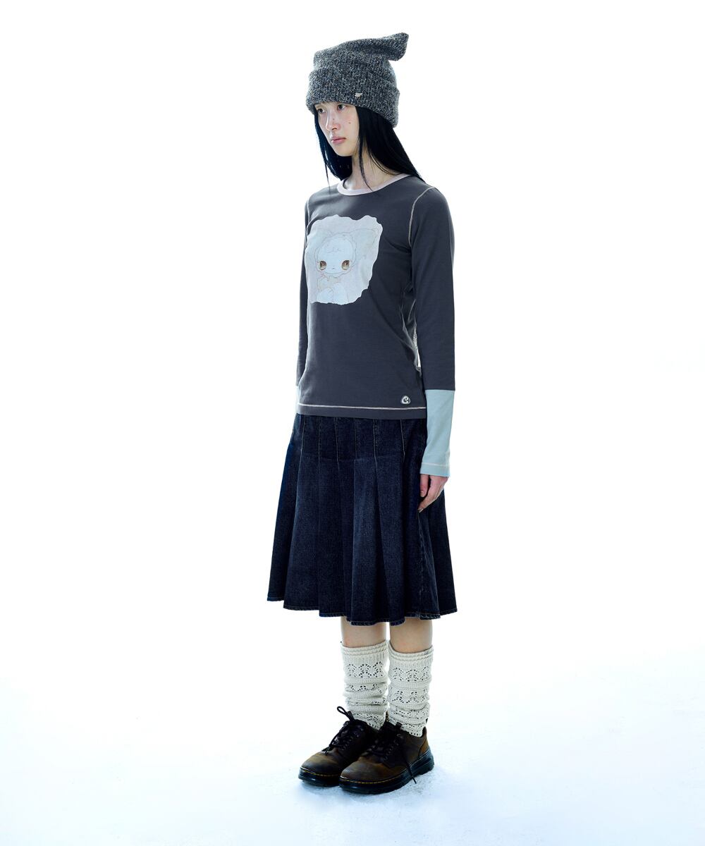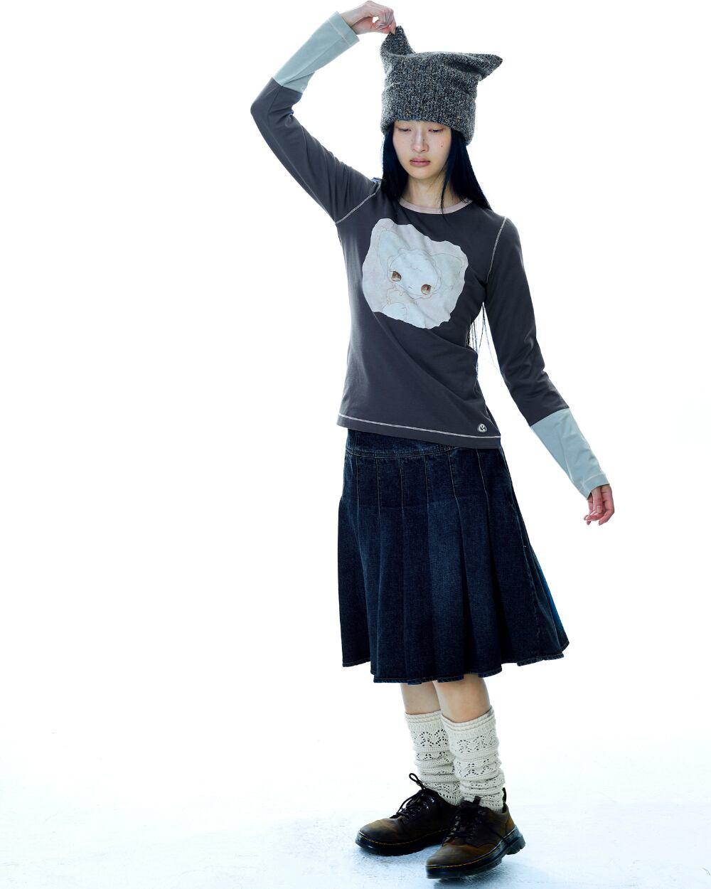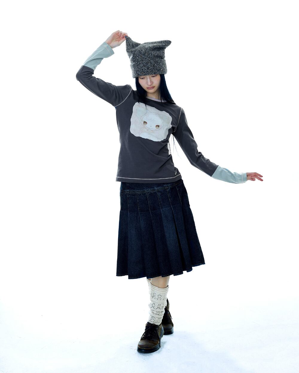 [COYSEIO] DEEP DENIM PLEATS SKIRT NAVY