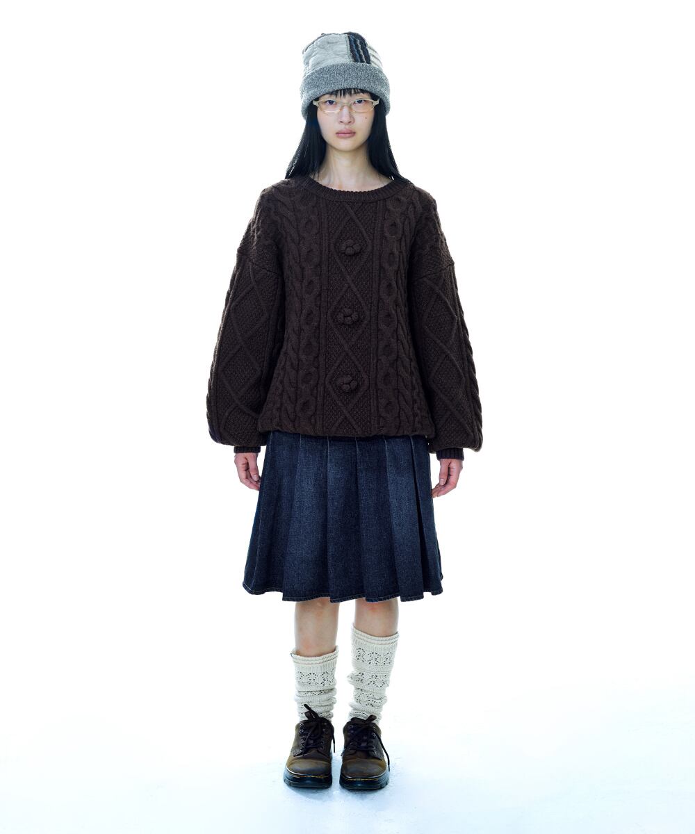 [COYSEIO] POMPOM CABLE KNIT BROWN