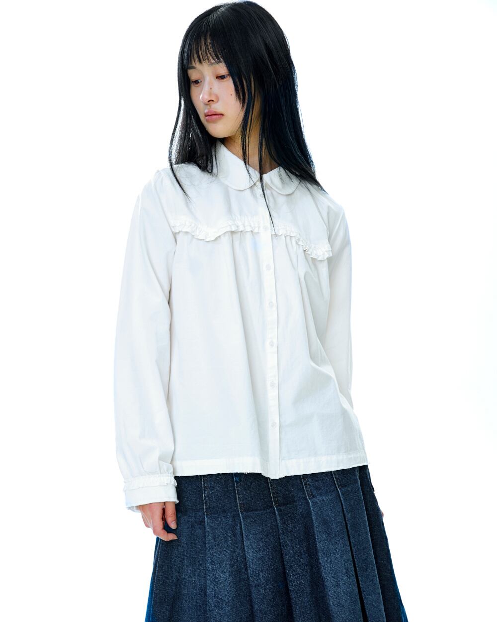 [COYSEIO] ROUGH CUT FRILL SHIRT IVORY