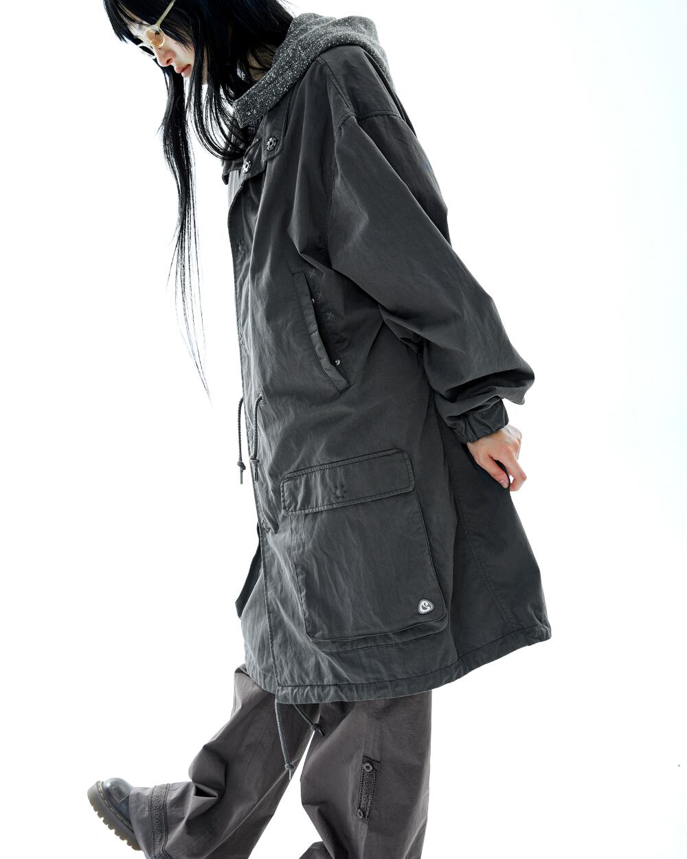 [COYSEIO] WASHED MILITARY JACKET MUD CHARCOAL