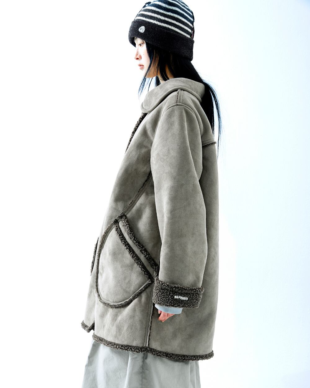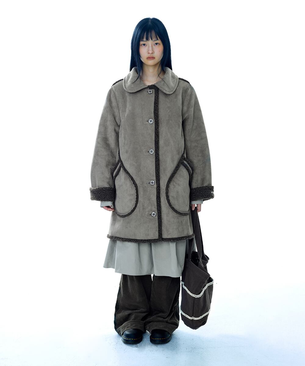 [COYSEIO] ROUND COLLAR SUEDE JACKET BROWN