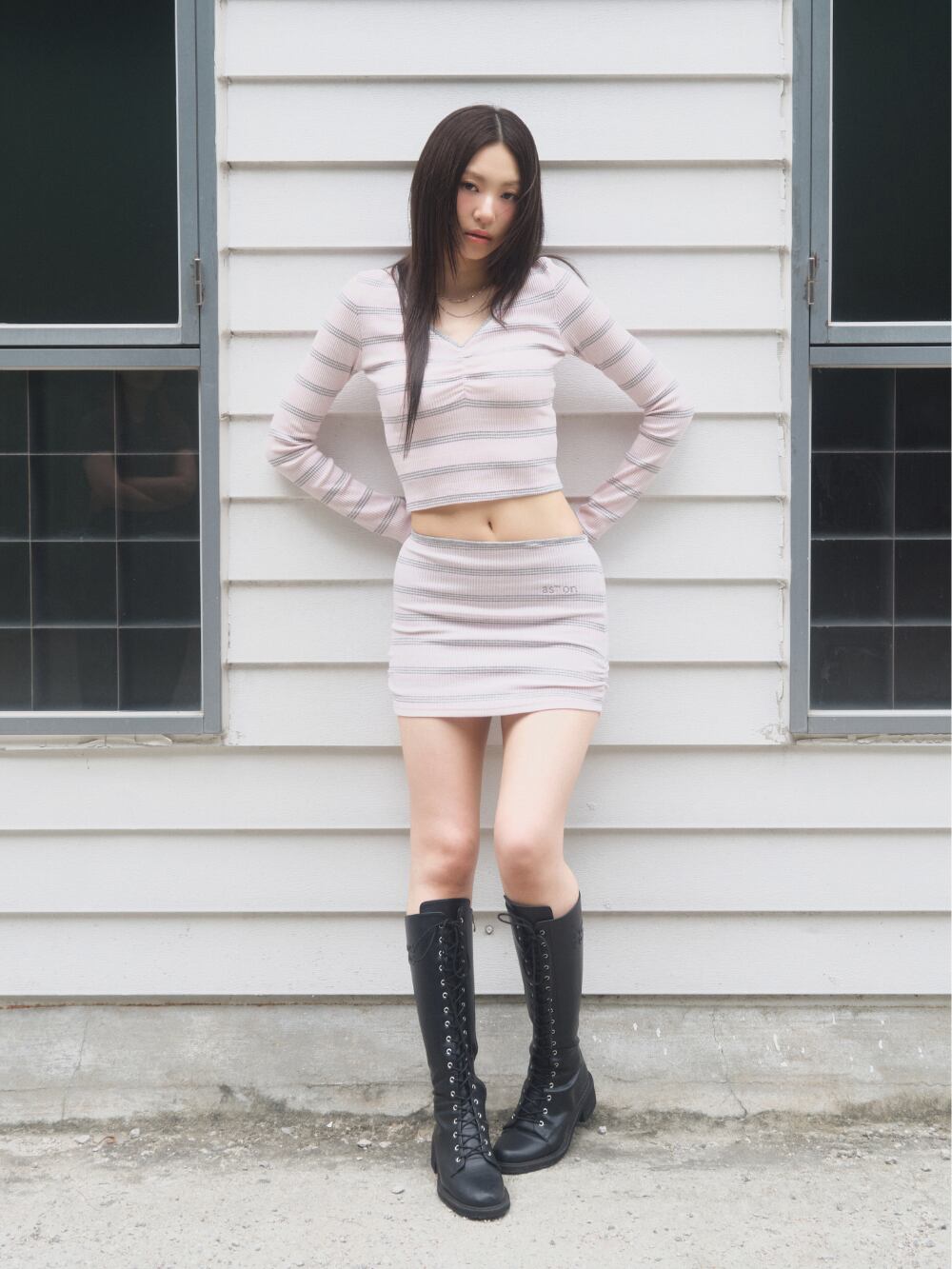 [as”on] BUMBLE STRIPE MINI SKIRT / PINK 正規品 韓国ブランド 韓国通販 韓国代行 韓国ファッション as on ason エズオン アズオン