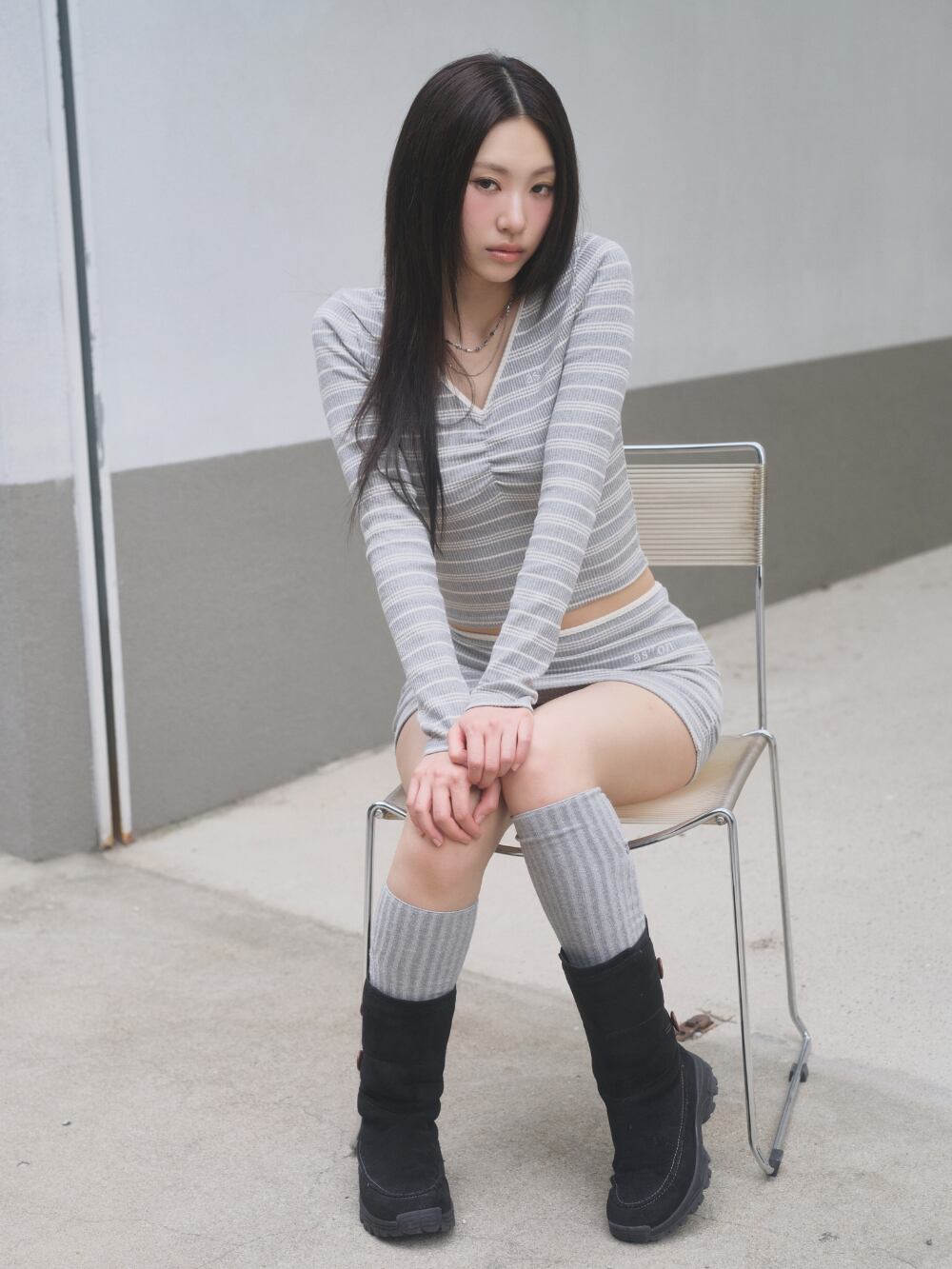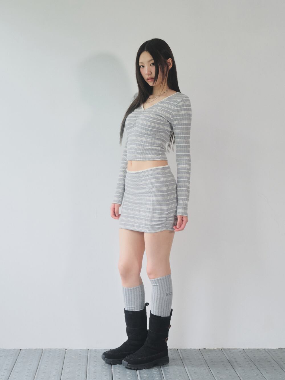 [as”on] BUMBLE STRIPE MINI SKIRT / GRAY
