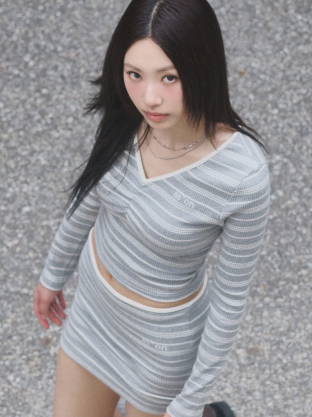 [as”on] BUMBLE STRIPE MINI SKIRT / GRAY 正規品 韓国ブランド 韓国通販 韓国代行 韓国ファッション as on ason エズオン アズオン