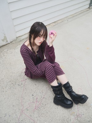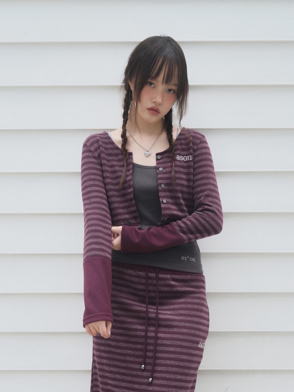 [as”on] BEN STRIPE LONG SKIRT / PURPLE 正規品 韓国ブランド 韓国通販 韓国代行 韓国ファッション as on ason エズオン アズオン