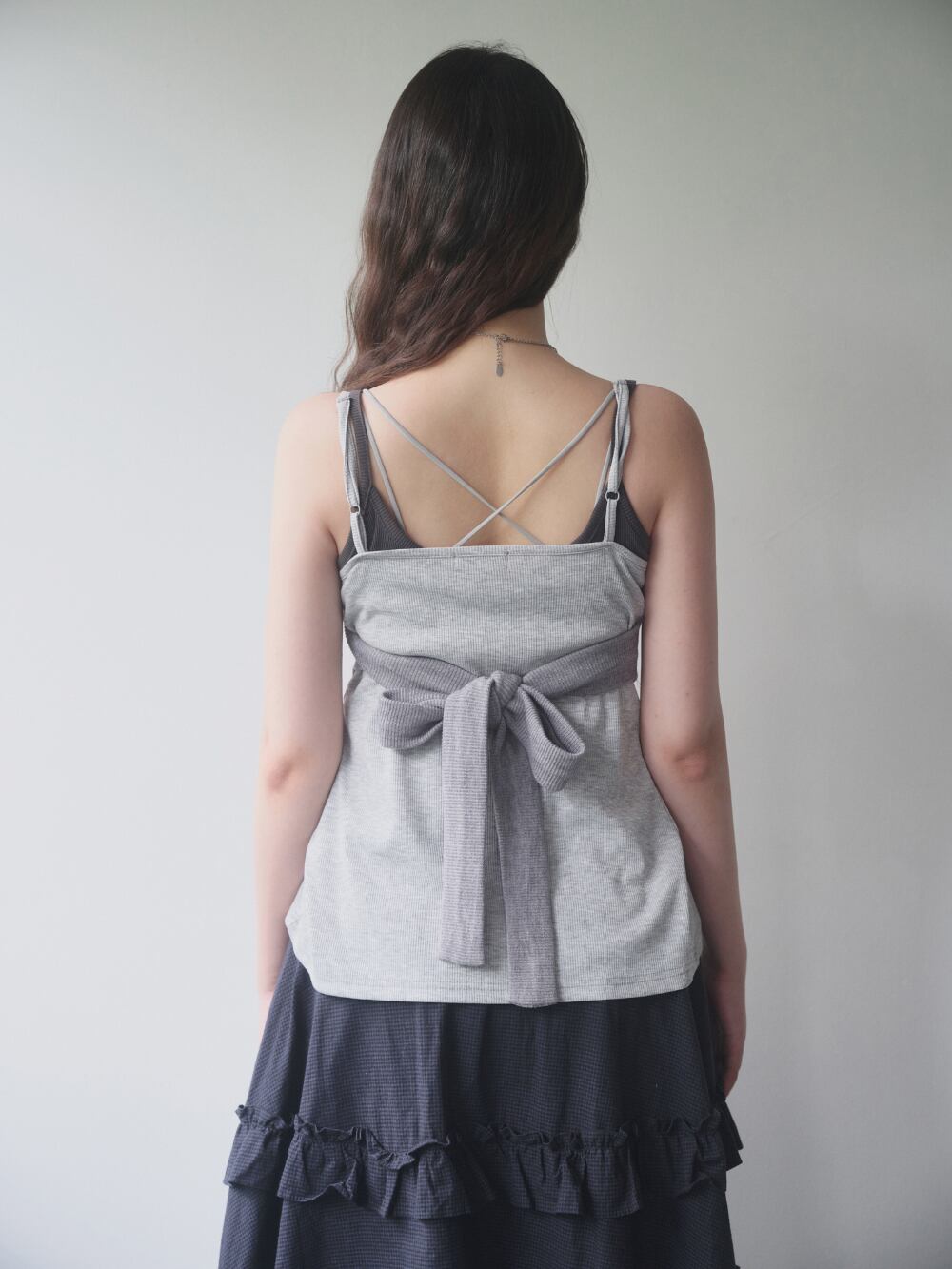 [as”on] BACK RIBBON SLEEVELESS / GRAY