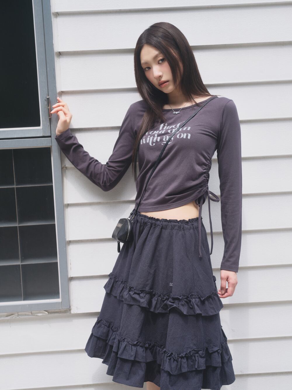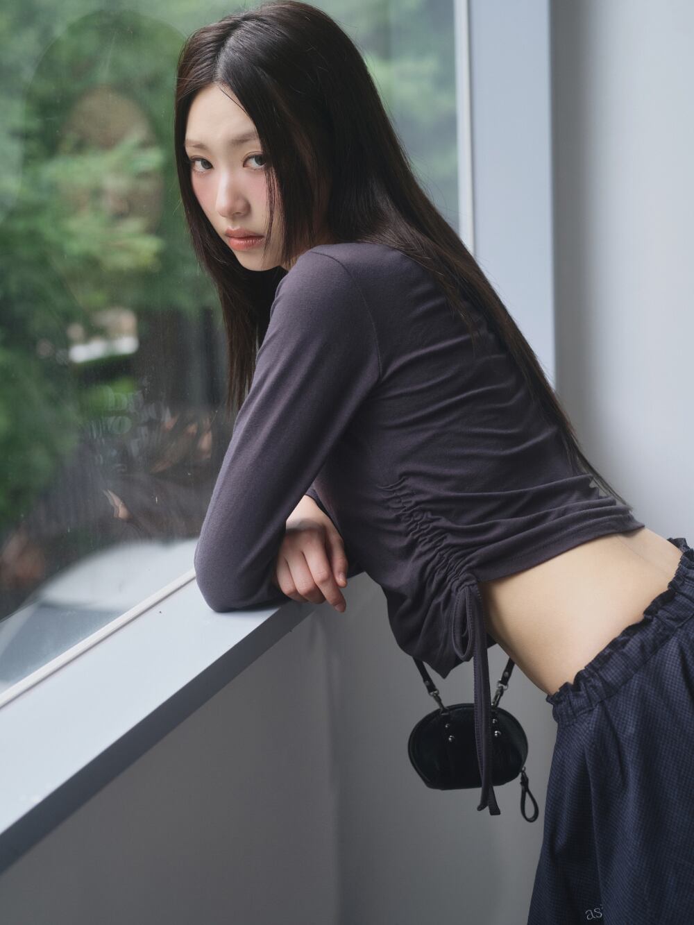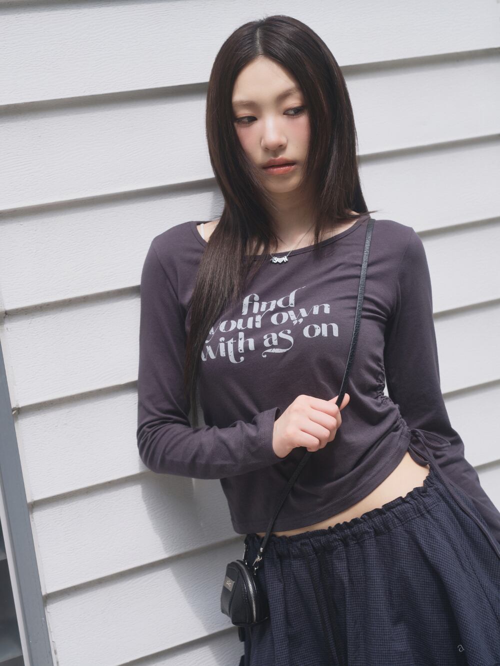 [as”on] BLACHE SHIRRING TEE / CHARCOAL 正規品 韓国ブランド 韓国通販 韓国代行 韓国ファッション as on ason エズオン アズオン
