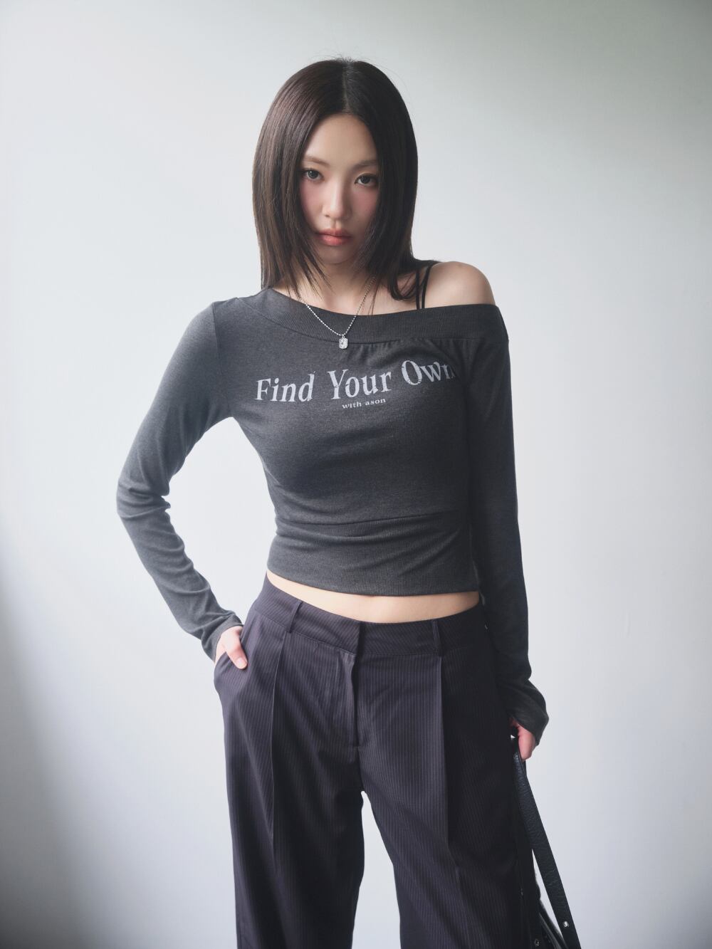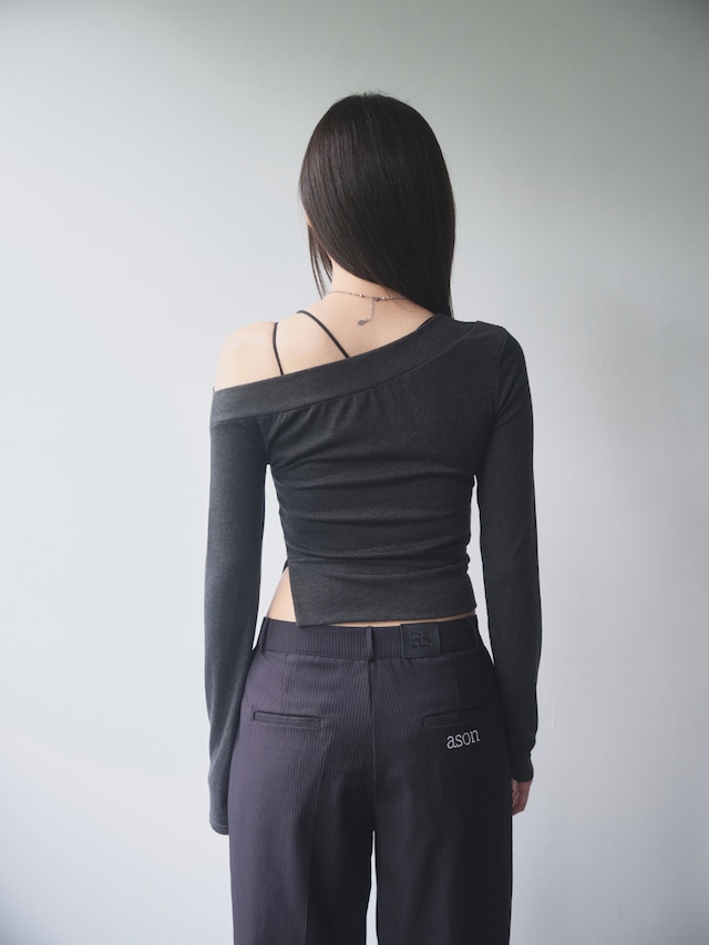 [as”on] FIND OFF-SHOULDER TEE / CHARCOAL 正規品 韓国ブランド 韓国通販 韓国代行 韓国ファッション as on ason エズオン アズオン