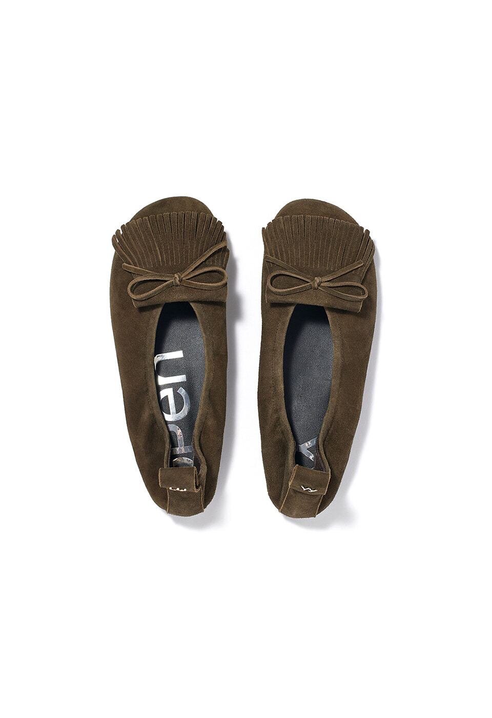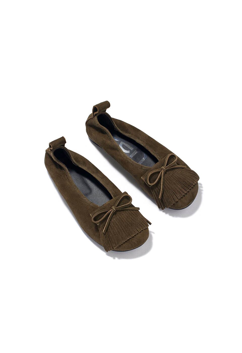 [OPEN YY] SUEDE BUN FRINGE FLAT, KHAKI