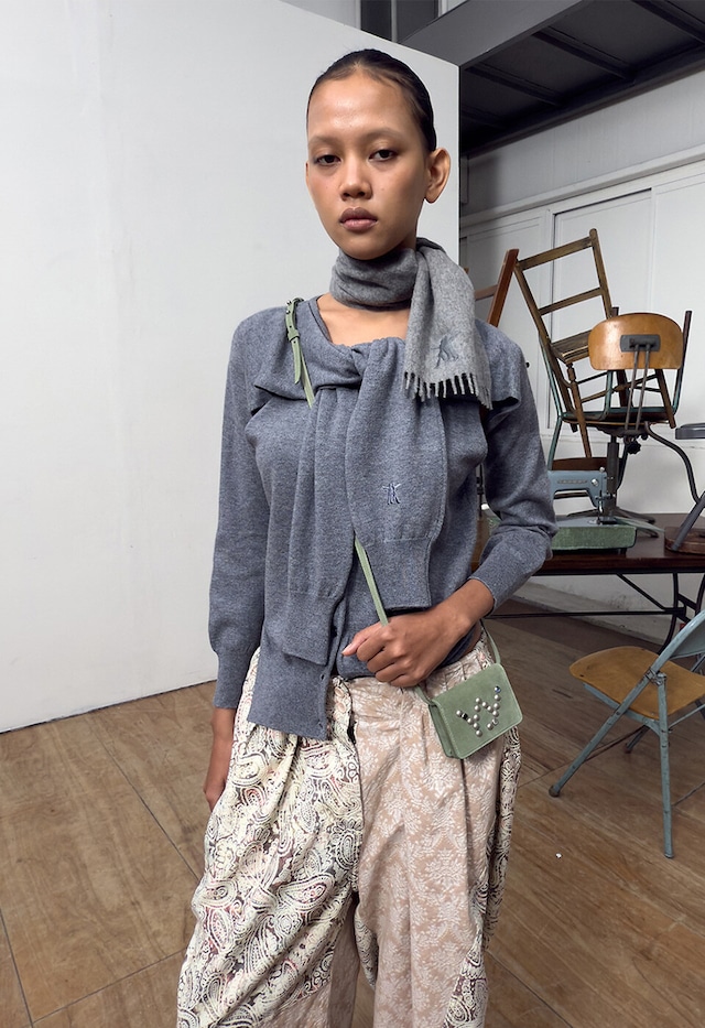 [OPEN YY] SLEEVE LAYERED CARDIGAN, GRAY 正規品 韓国ブランド 韓国通販 韓国代行 韓国ファッション オープン ワイワイ 日本 店舗