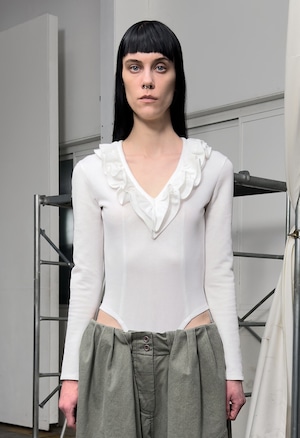 [OPEN YY] RUFFLE BODYSUIT, WHITE