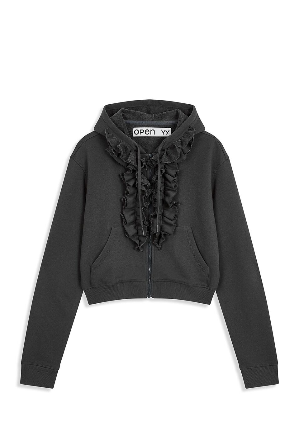 [OPEN YY] RUFFLE HOODIE, CHARCOAL