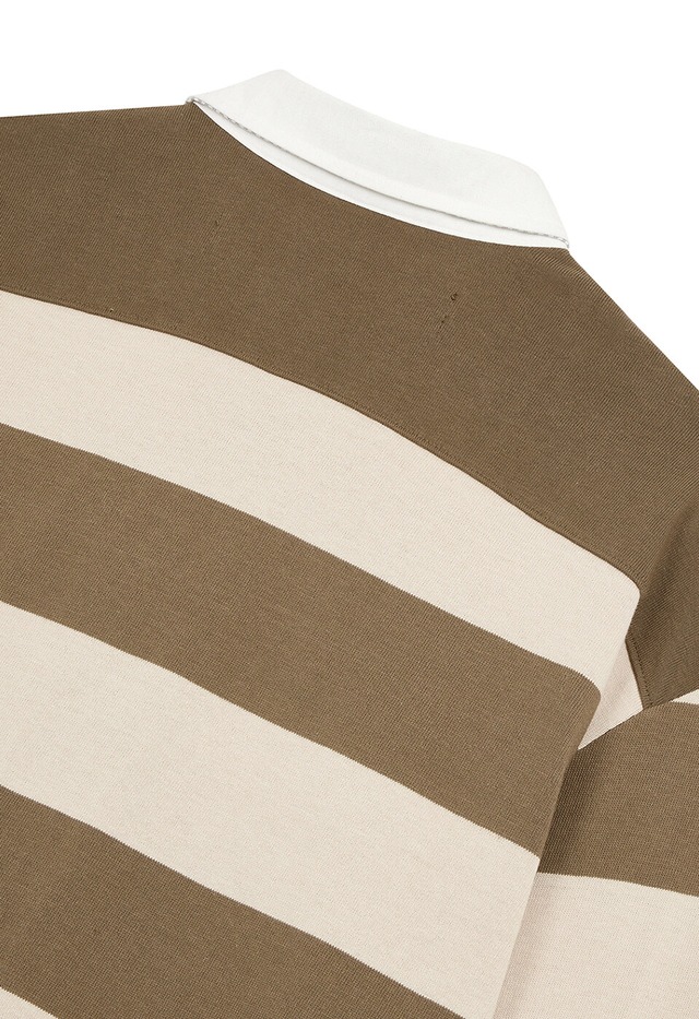 [OPEN YY] STRIPE TRIM RUGBY SHIRT, BEIGE