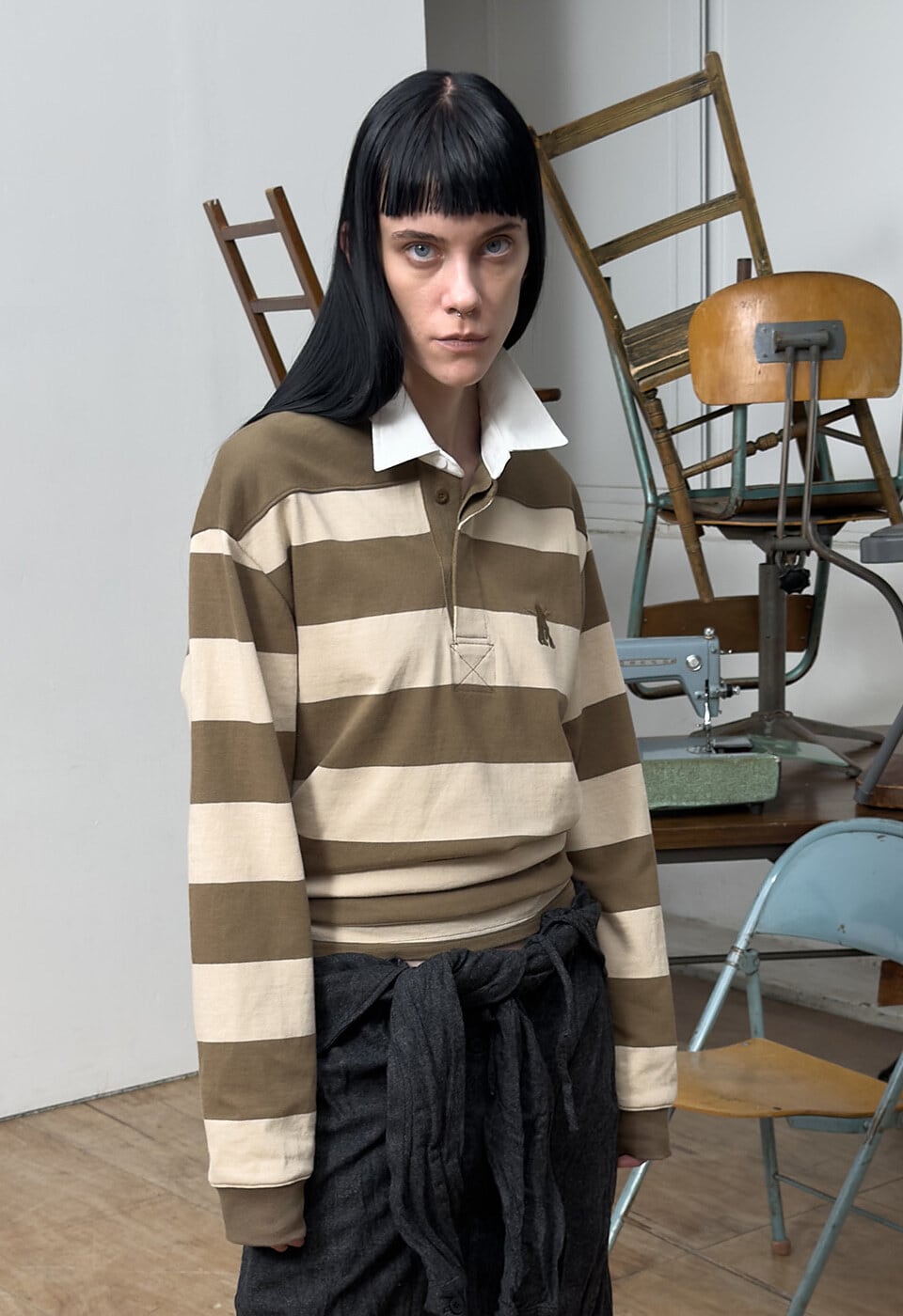 [OPEN YY] STRIPE TRIM RUGBY SHIRT, BEIGE 正規品 韓国ブランド 韓国通販 韓国代行 韓国ファッション オープン ワイワイ 日本 店舗