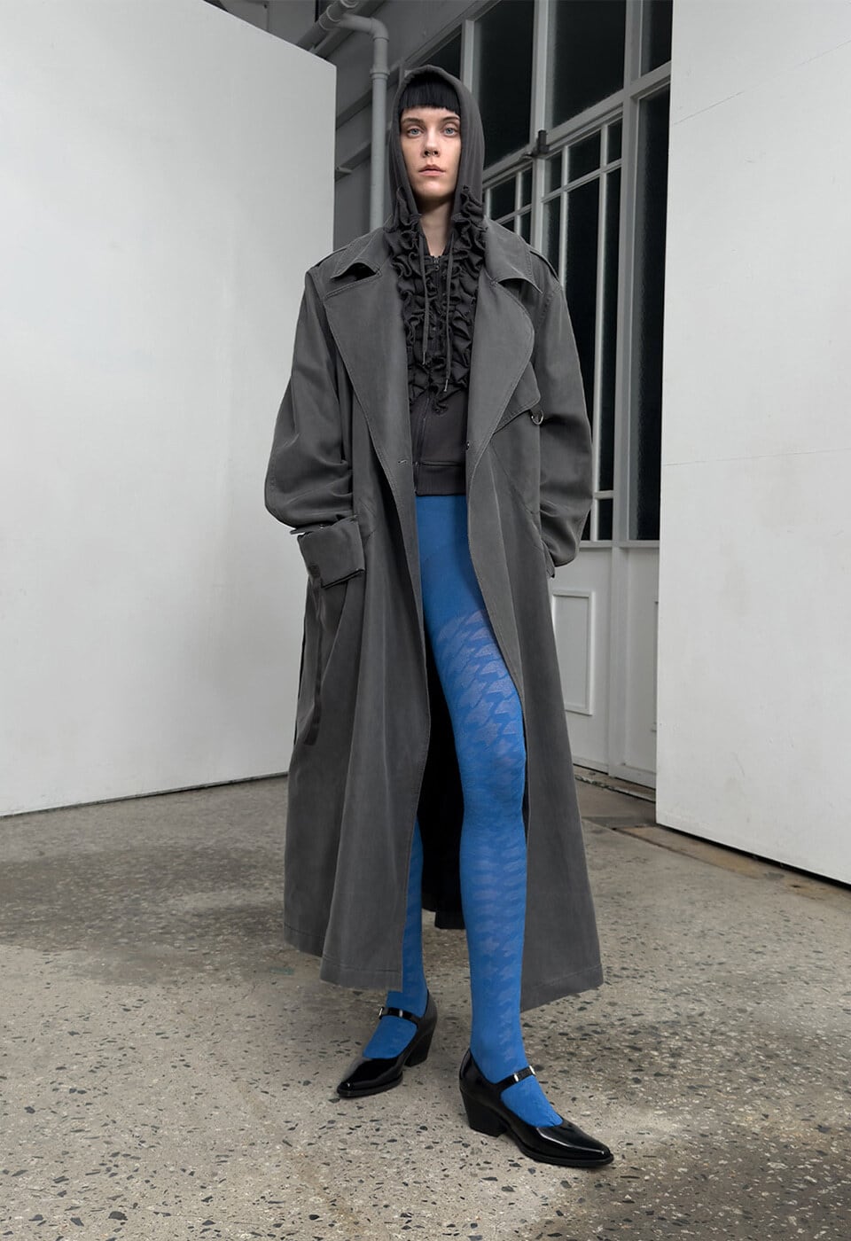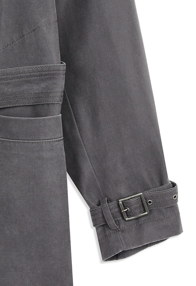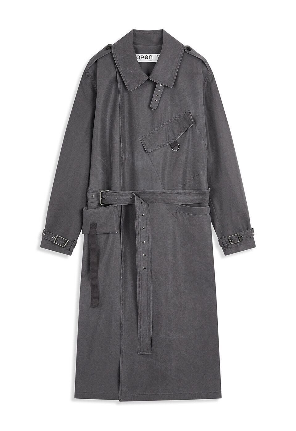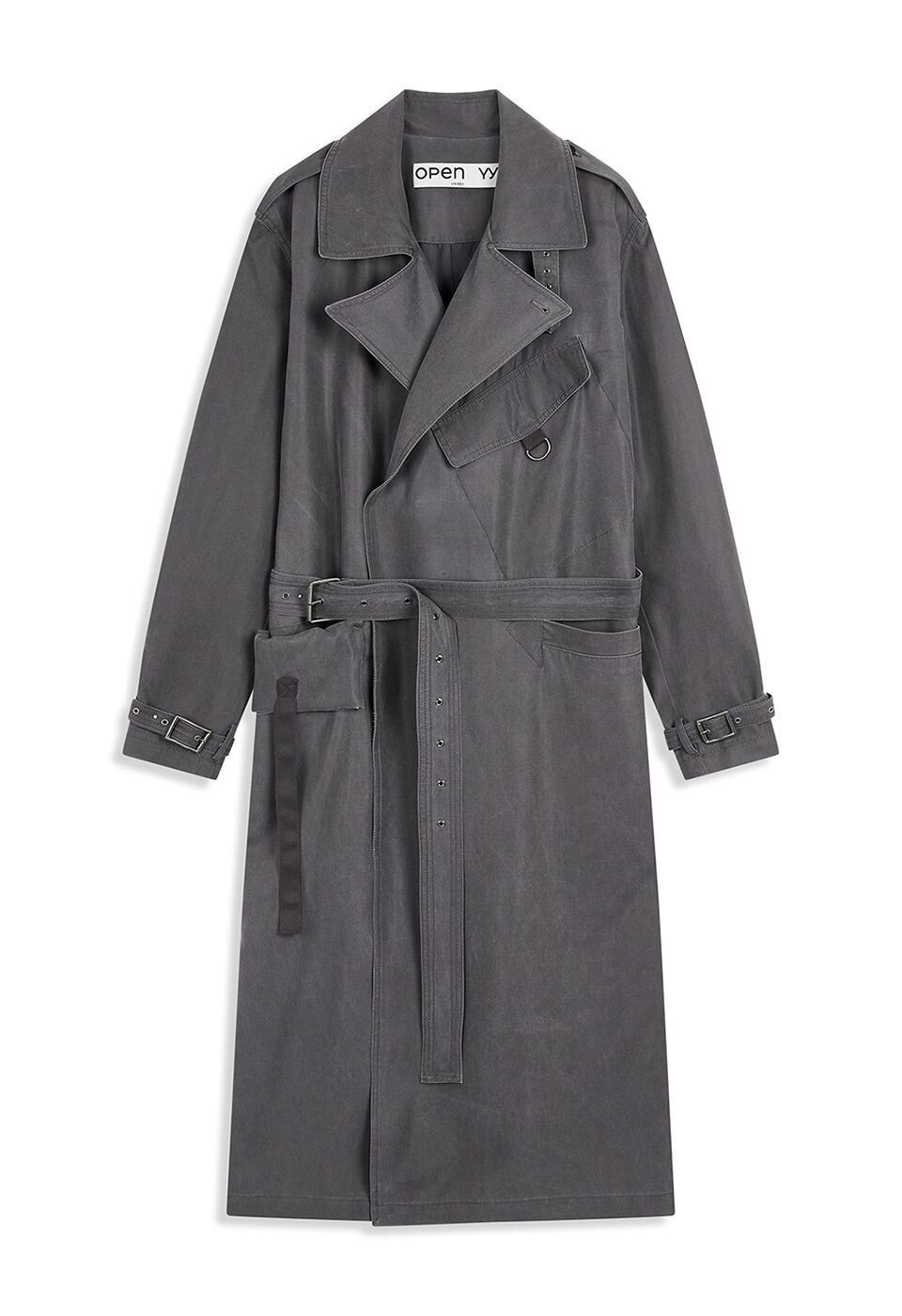 [OPEN YY] MOTORCYCLE MAXI TRENCH COAT, GRAY